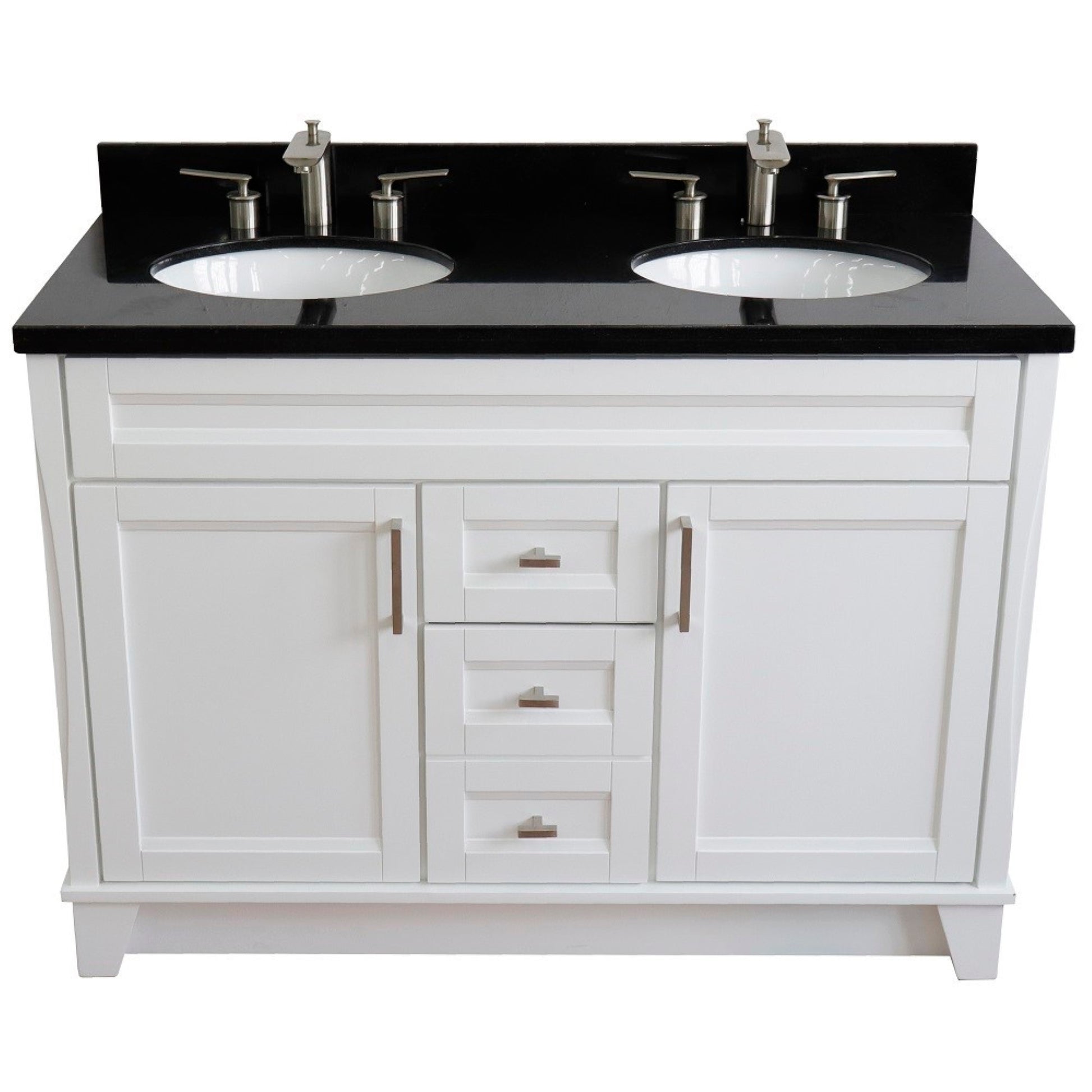 49" Double sink vanity in White finish with Black galaxy granite and oval sink