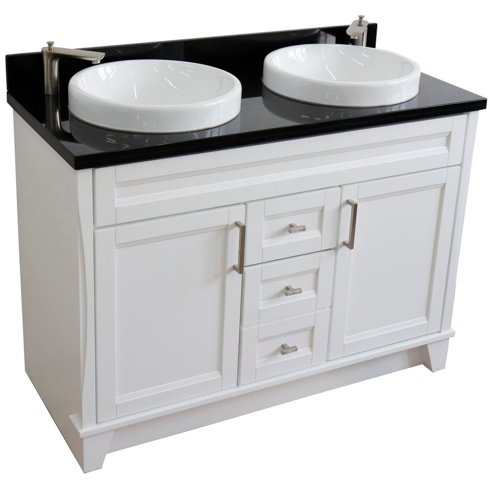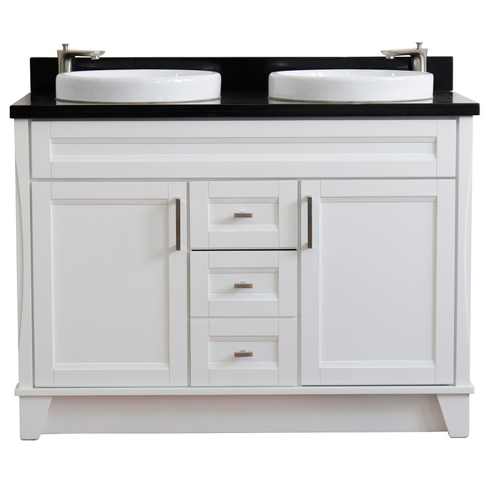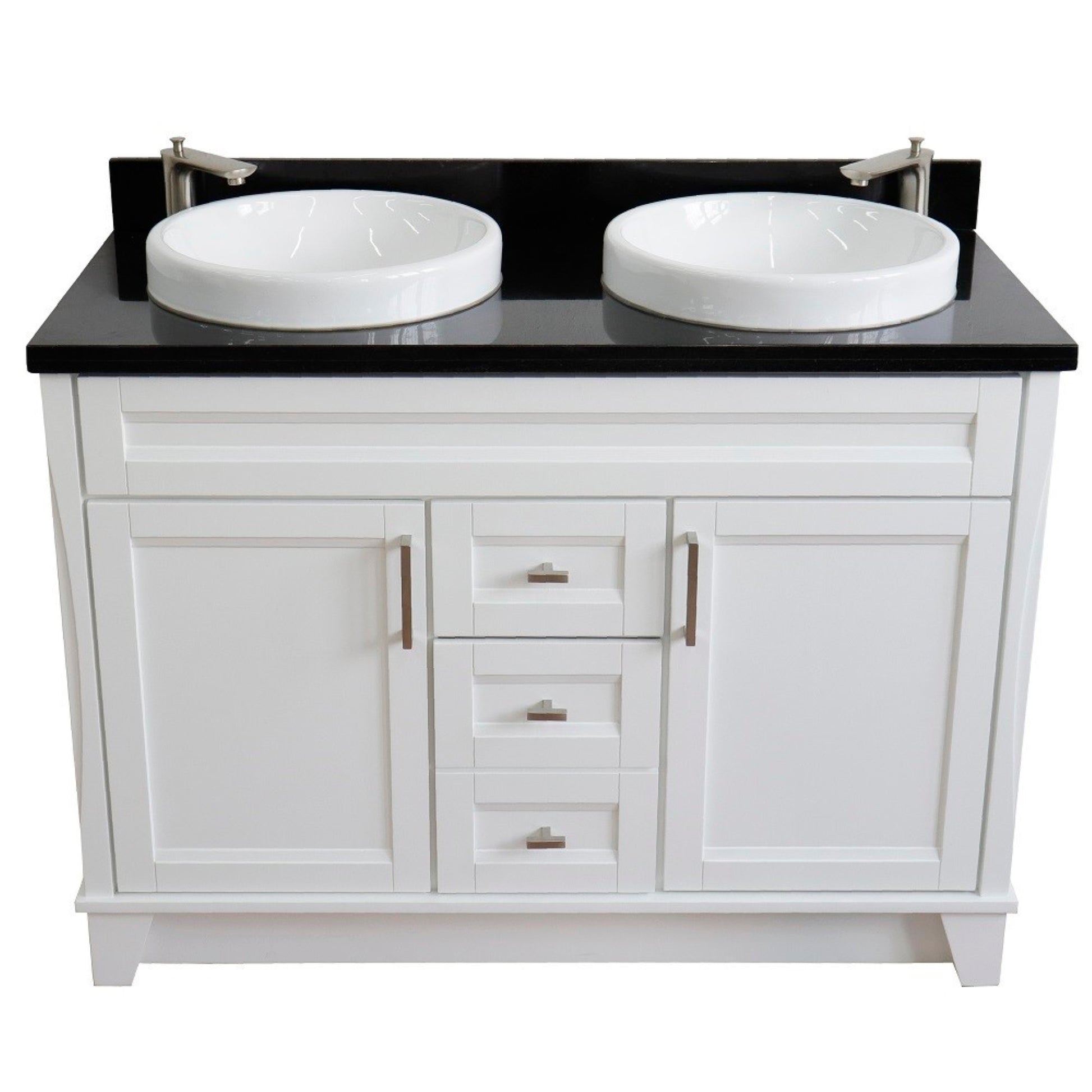 49" Double sink vanity in White finish with Black galaxy granite and round sink
