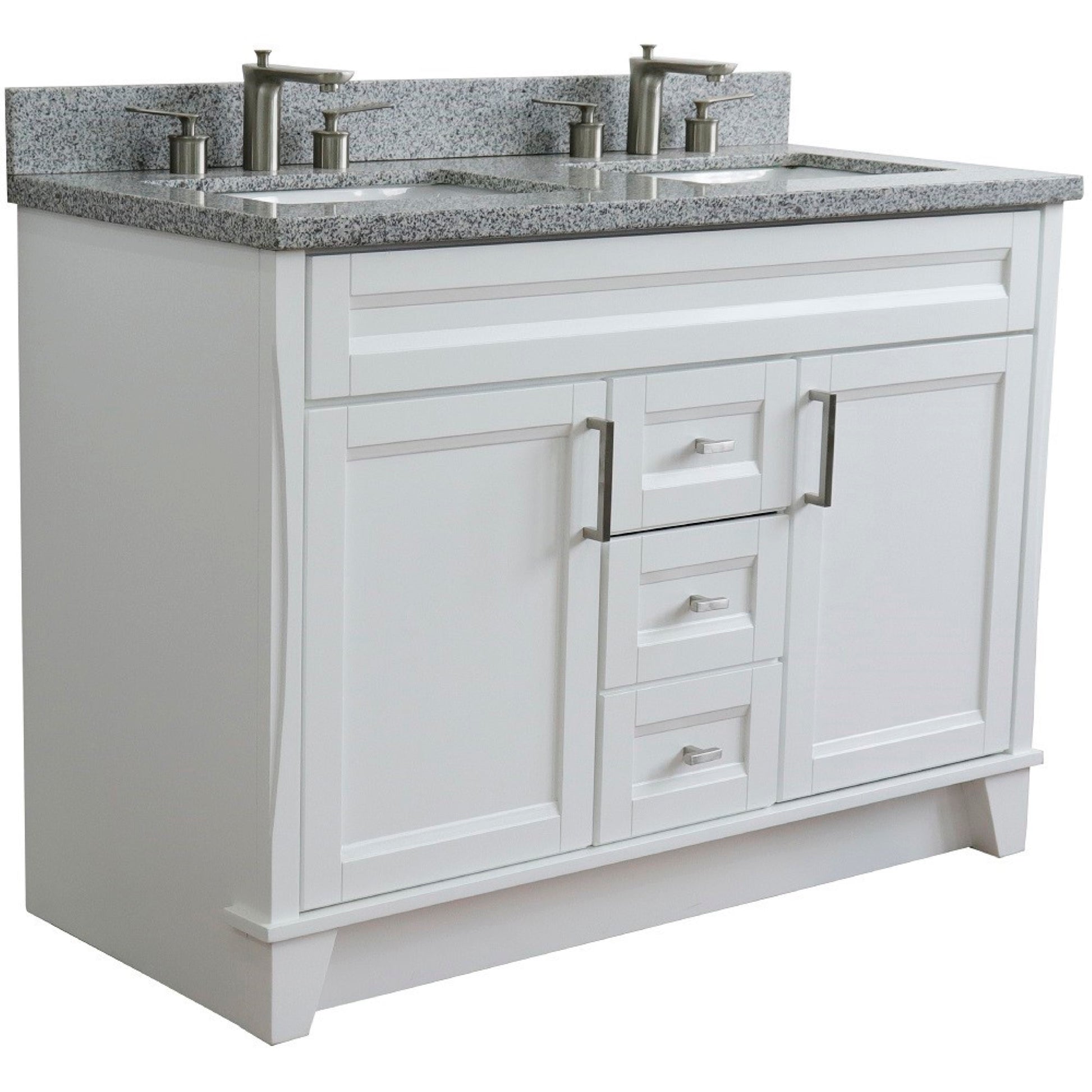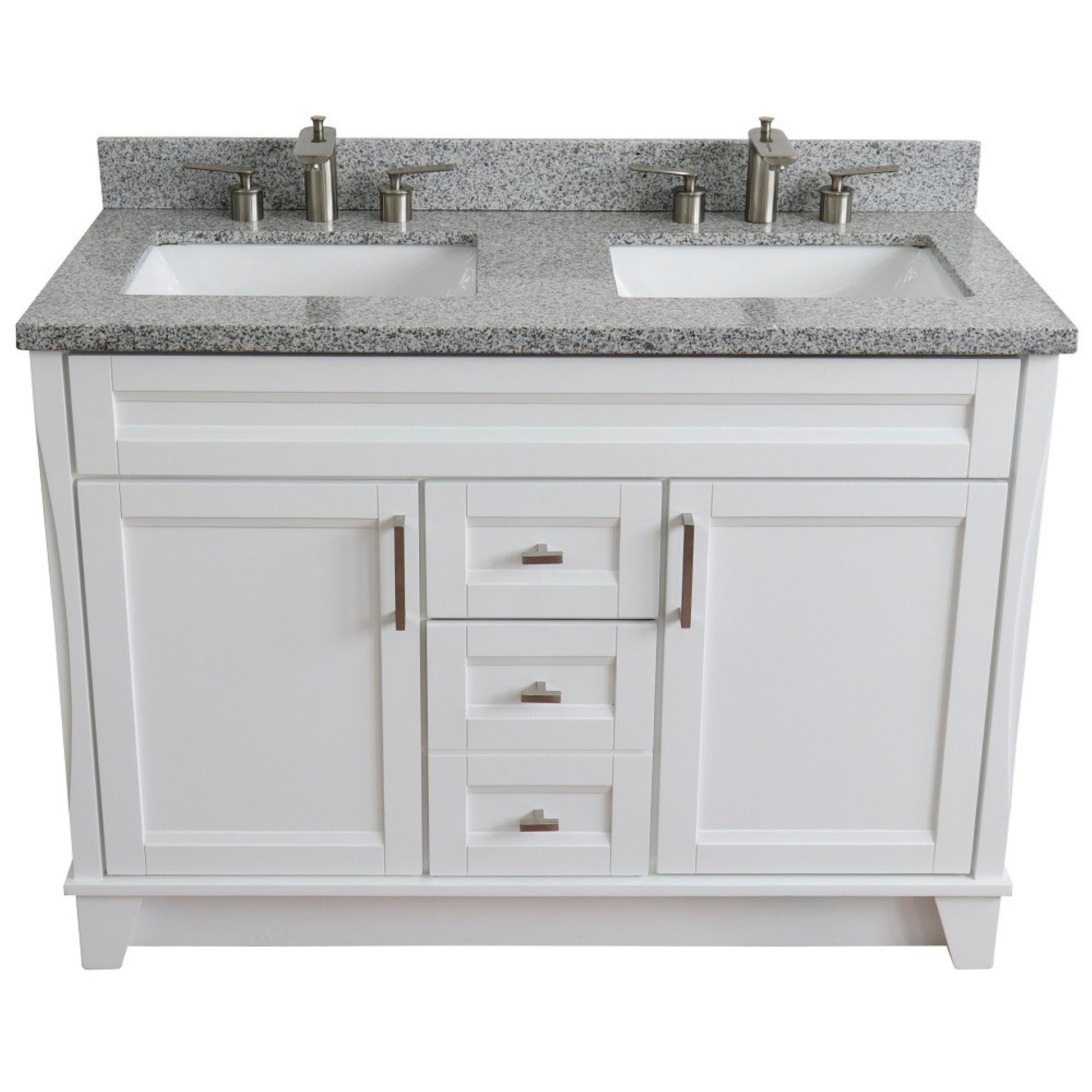 49" Double sink vanity in White finish with Gray granite and rectangle sink