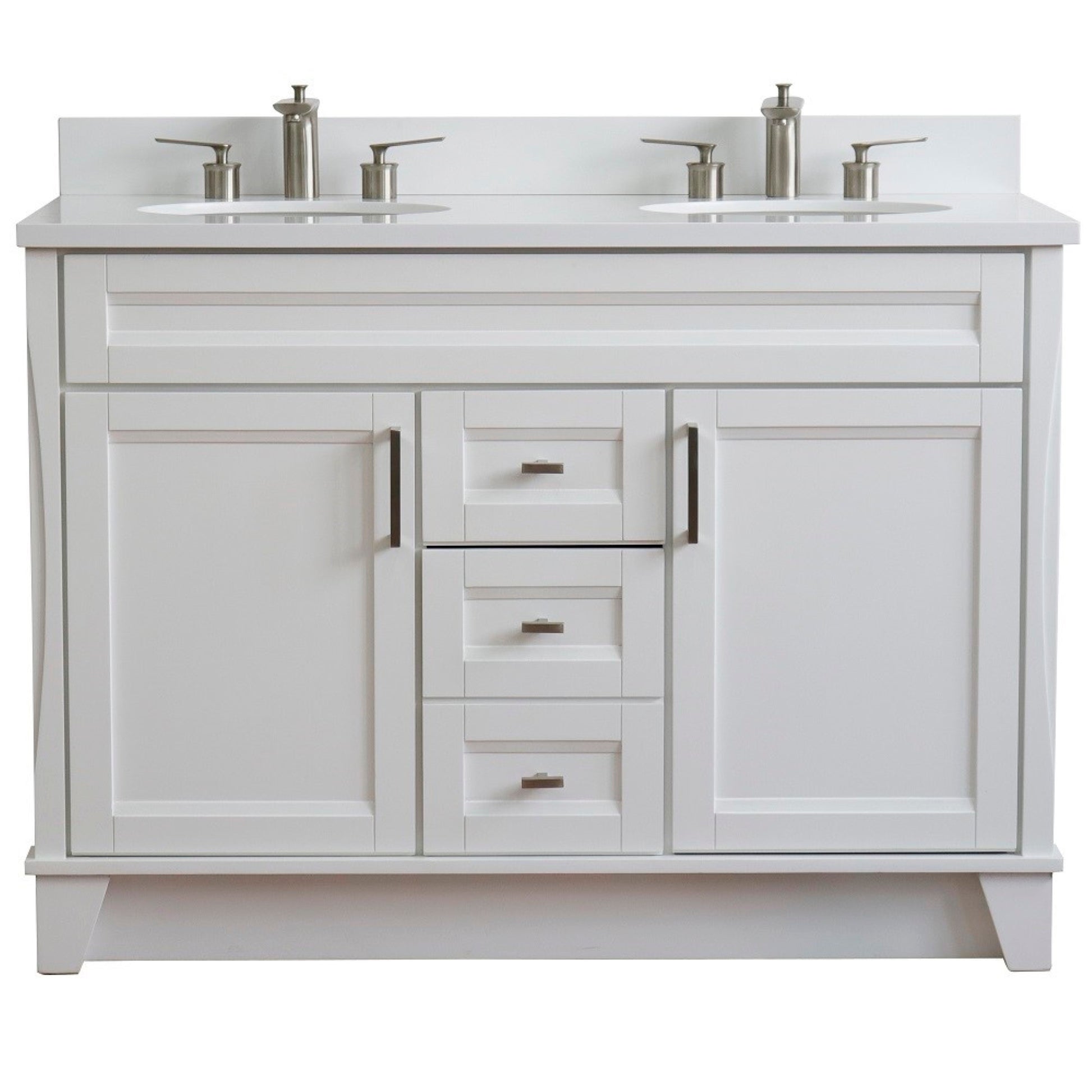 49" Double sink vanity in White finish with White engineered stone and oval sink