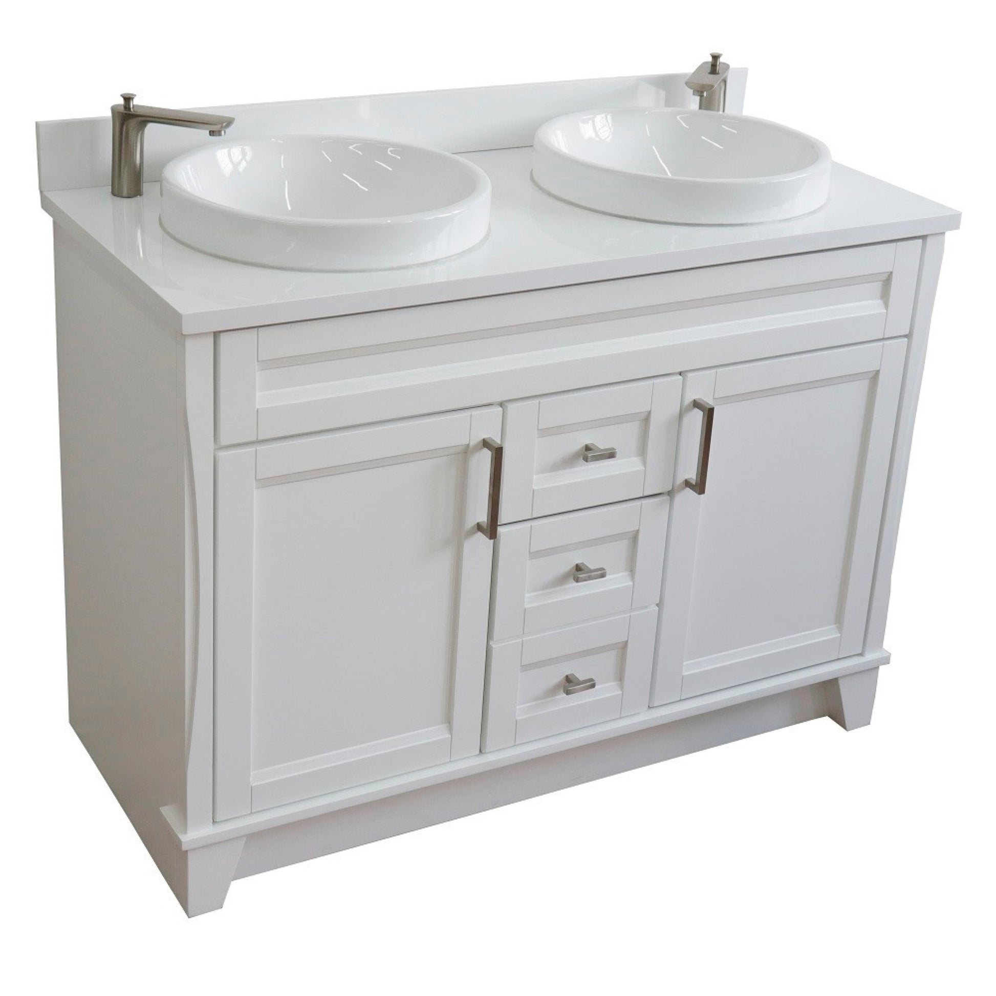 49" Double sink vanity in White finish with White engineered stone and round sink
