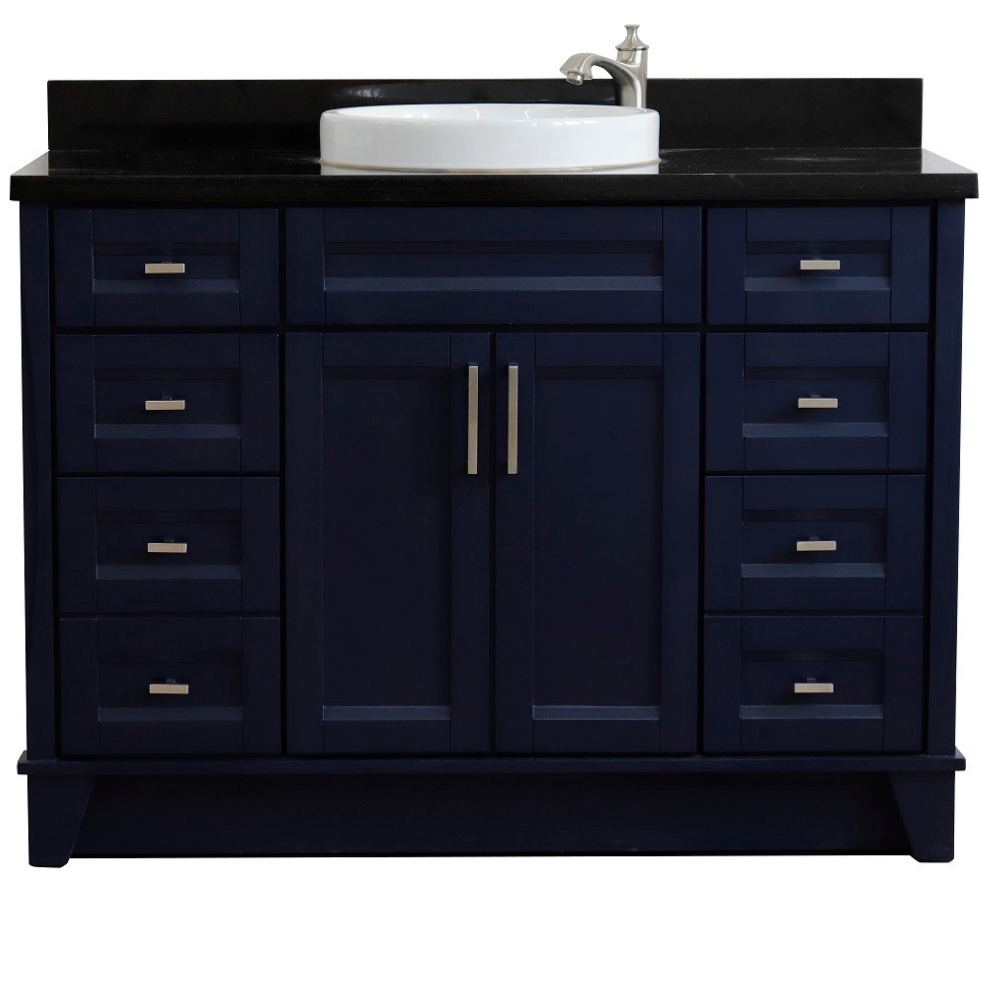 49" Single sink vanity in Blue finish with Black galaxy granite and round sink
