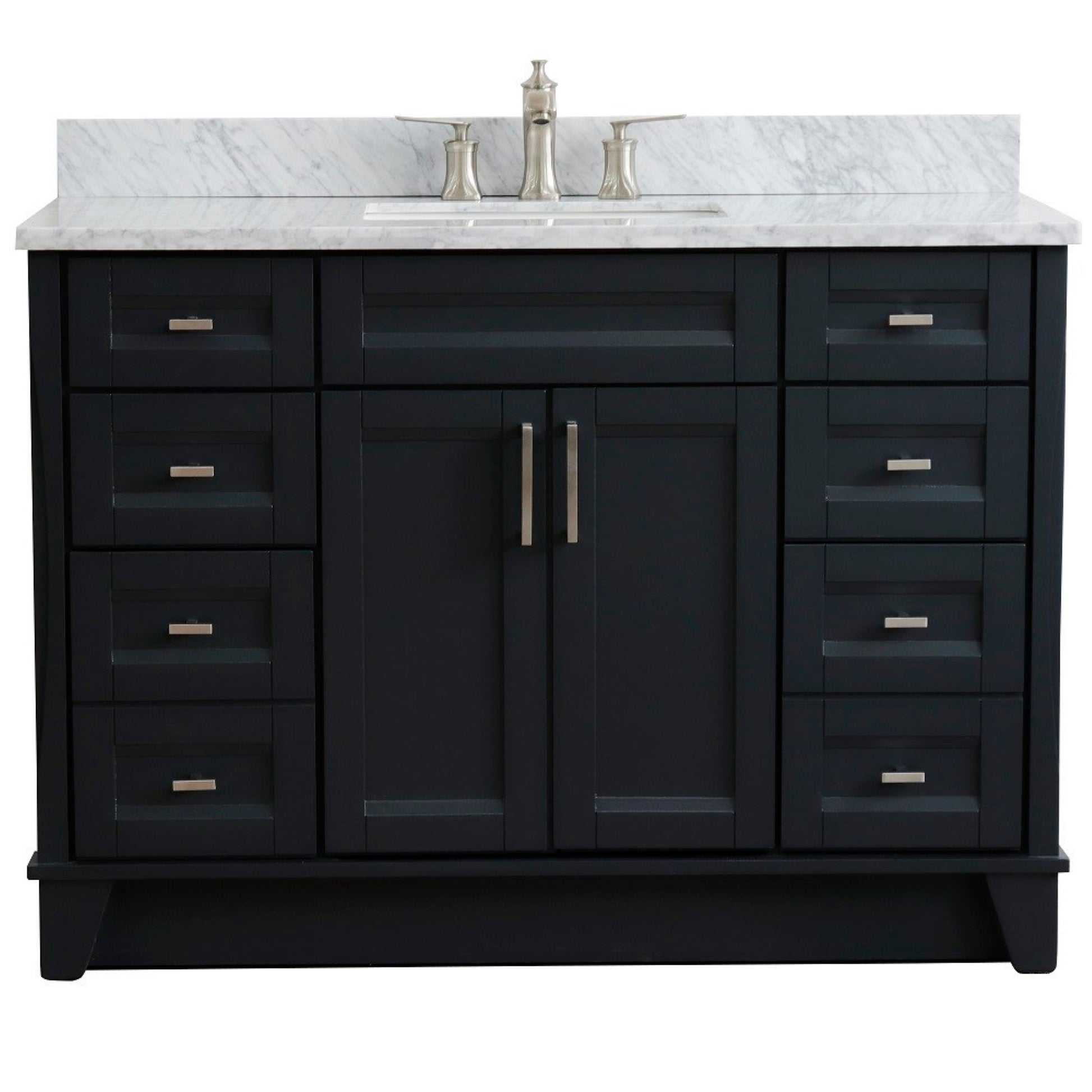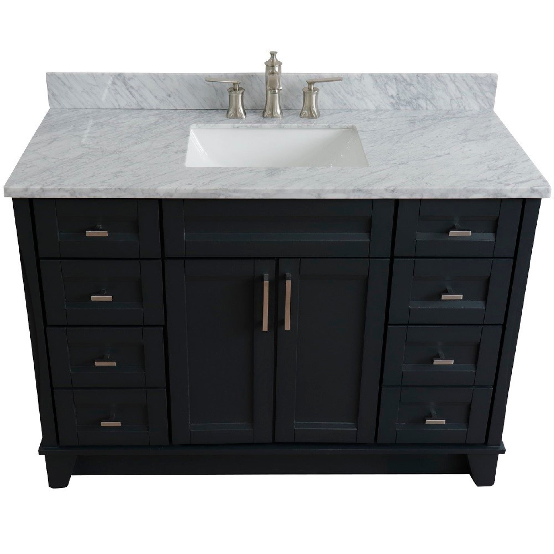 49" Single sink vanity in Dark Gray finish with White Carrara marble and rectangle sink
