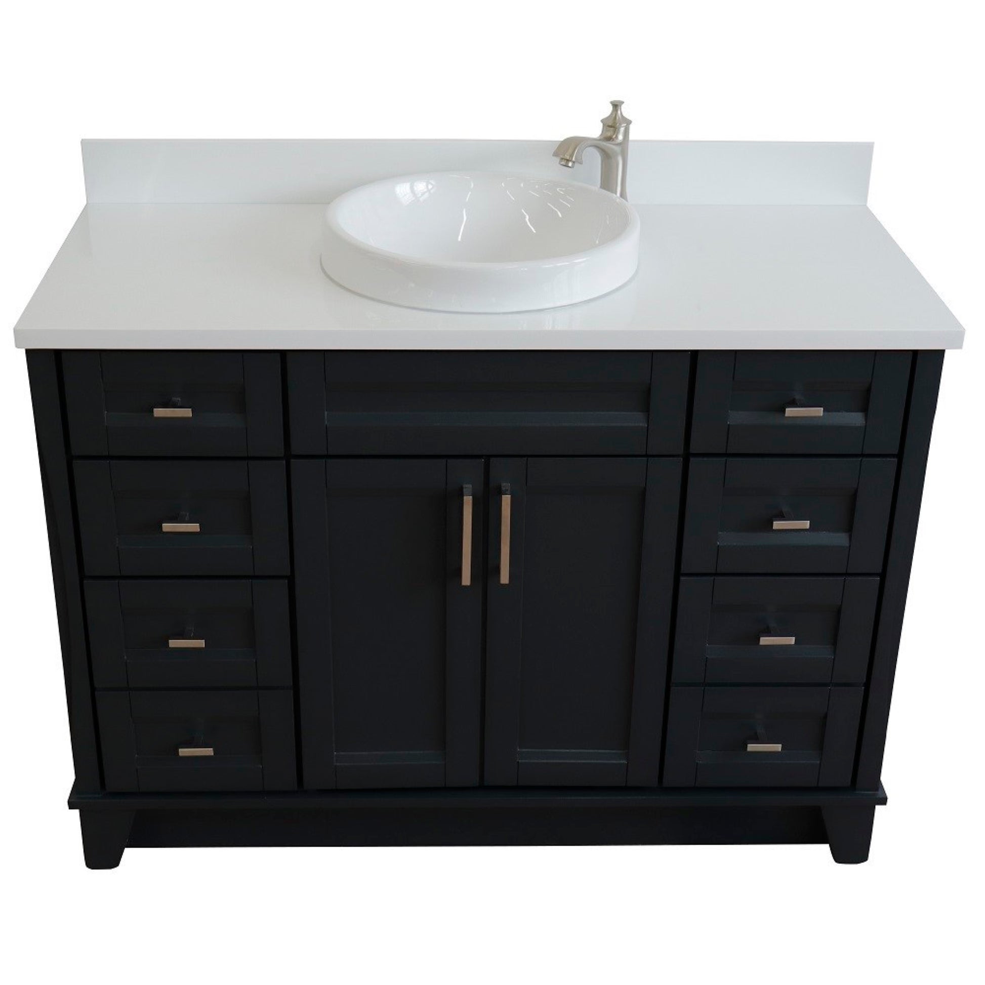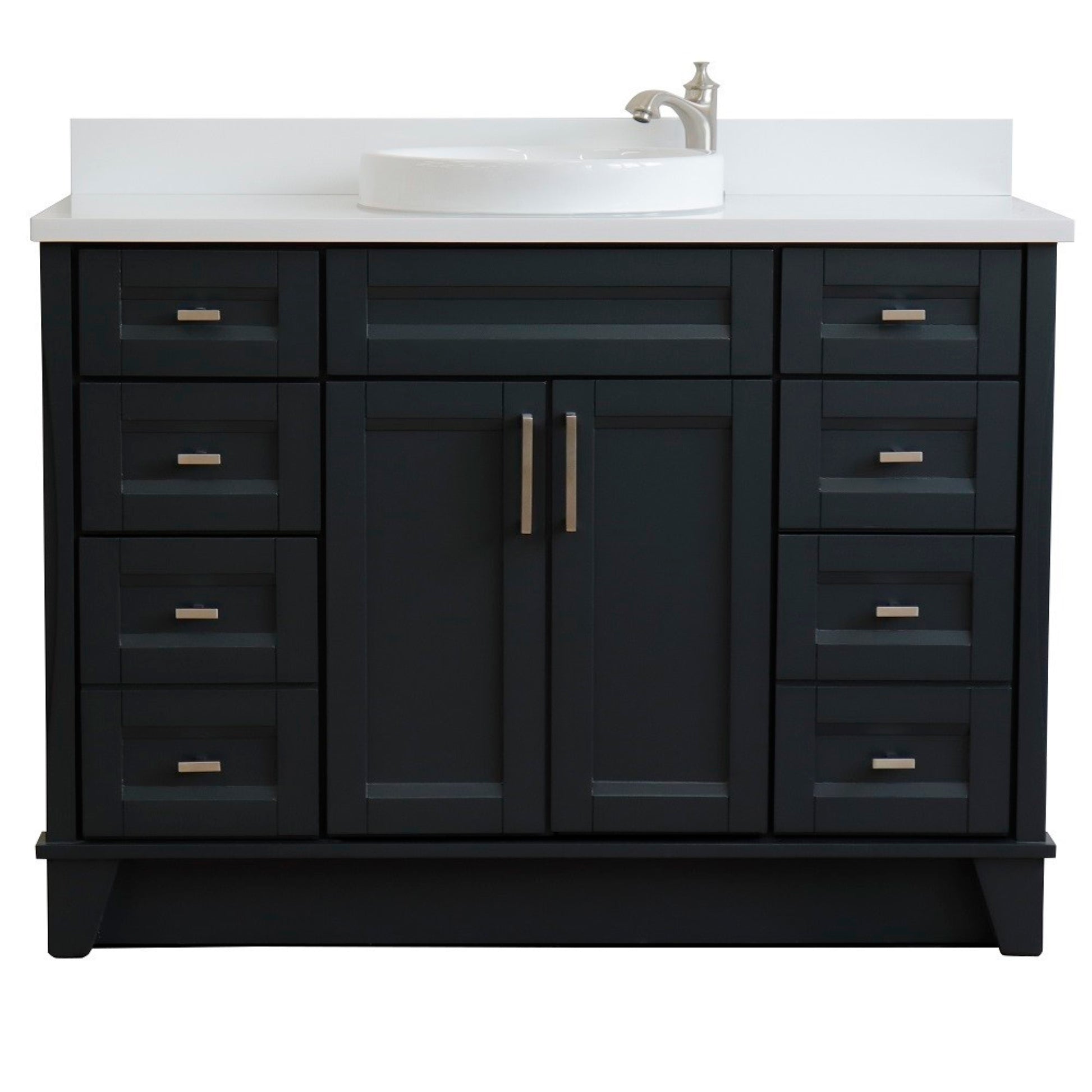 49" Single sink vanity in Dark Gray finish with White engineered stone and round sink