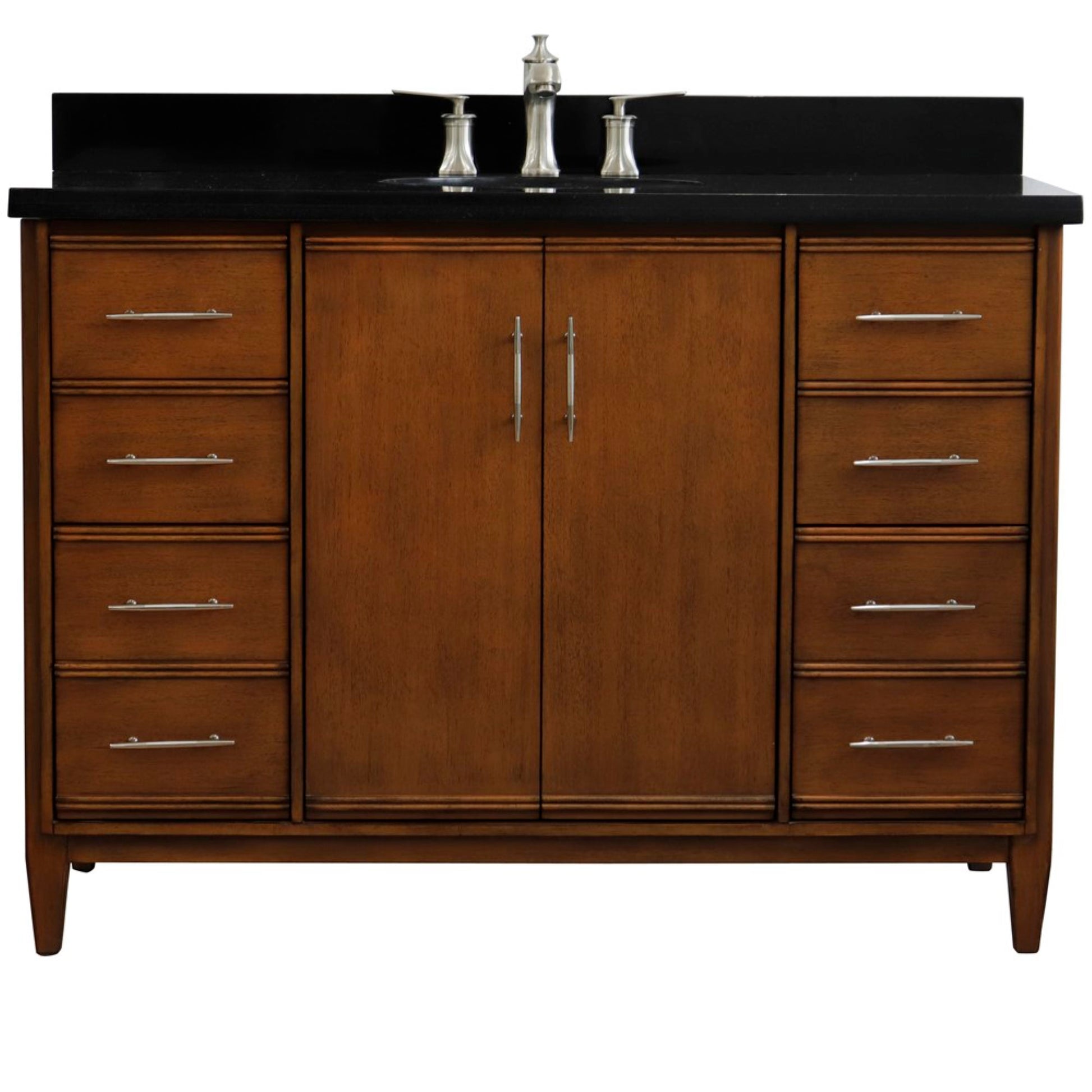 49" Single sink vanity in Walnut finish with Black galaxy granite and oval sink