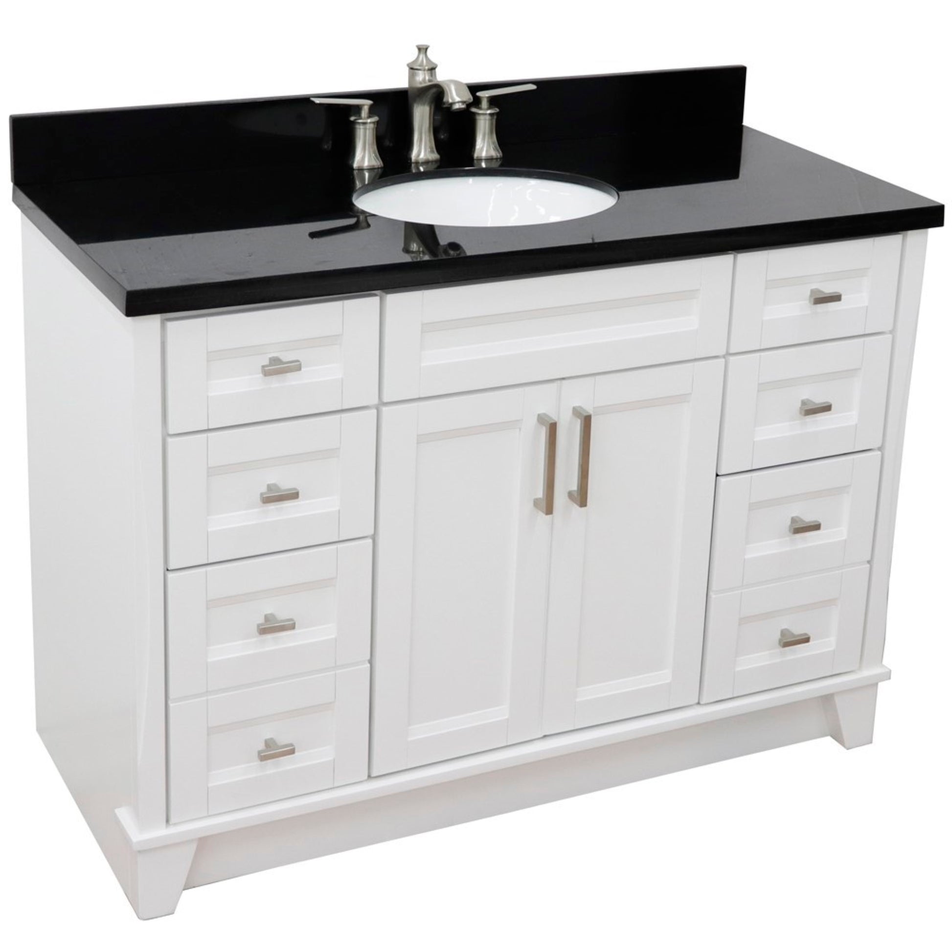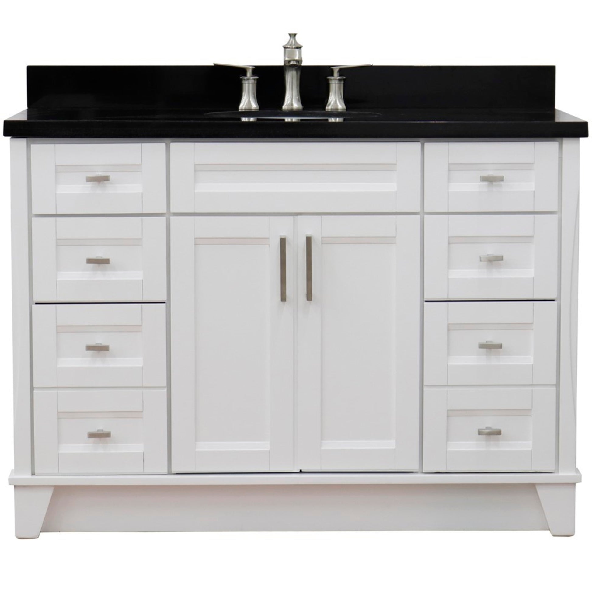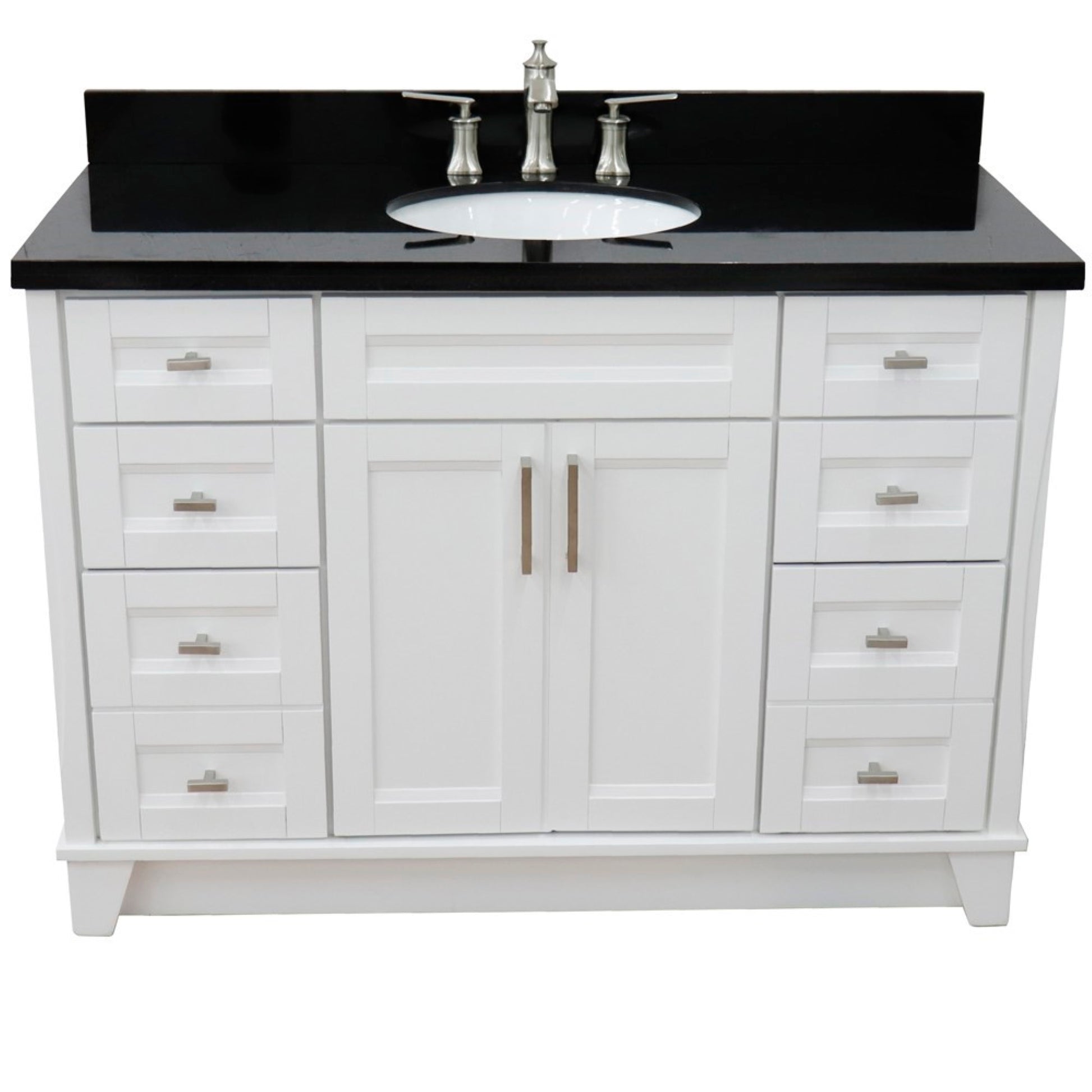 49" Single sink vanity in White finish with Black galaxy granite and oval sink