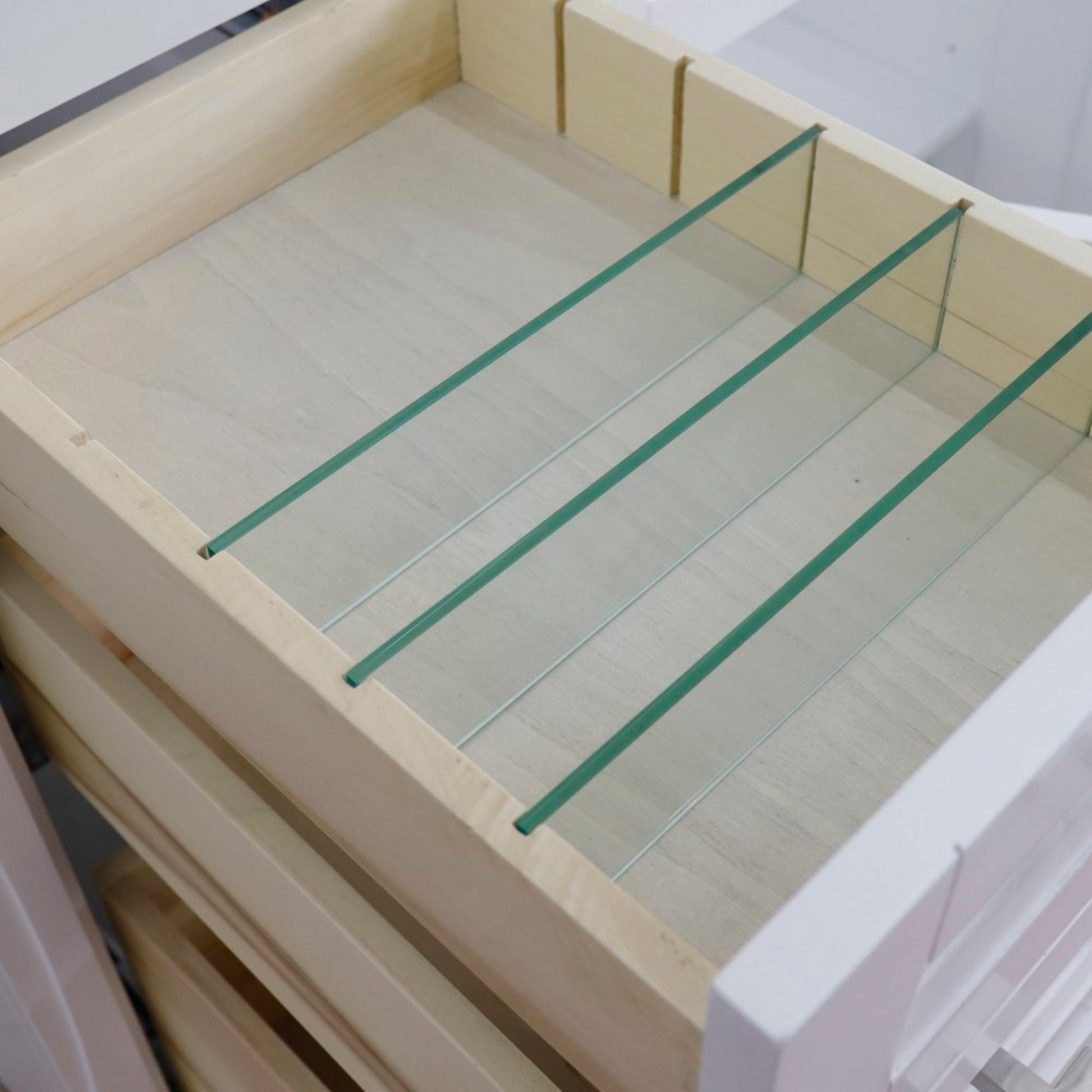 The Terni collection by Bellaterra Home features simple style bathroom vanities that can integrate seamlessly with any home design. From a simple or to the grand home design, you will appreciate this beautifully crafted piece of furniture as the focal point in your bathroom. The structure of the cabinet is built with solid oak. This vanity has six drawers and two cabinet doors that open to a large ample storage space. The drawers are constructed with English dovetail and are installed with smooth full extension glides to provide durability. This vanity features brushed nickel finish hardware and a beautiful counter top that is pre-sealed and polished for added protection. The bathroom vanity top is preinstalled with a white cUPC certified ceramic sink.