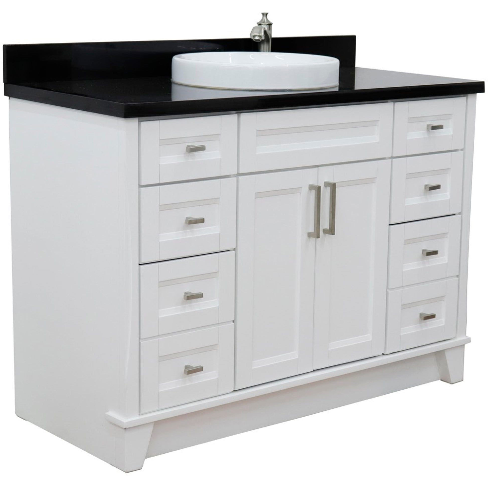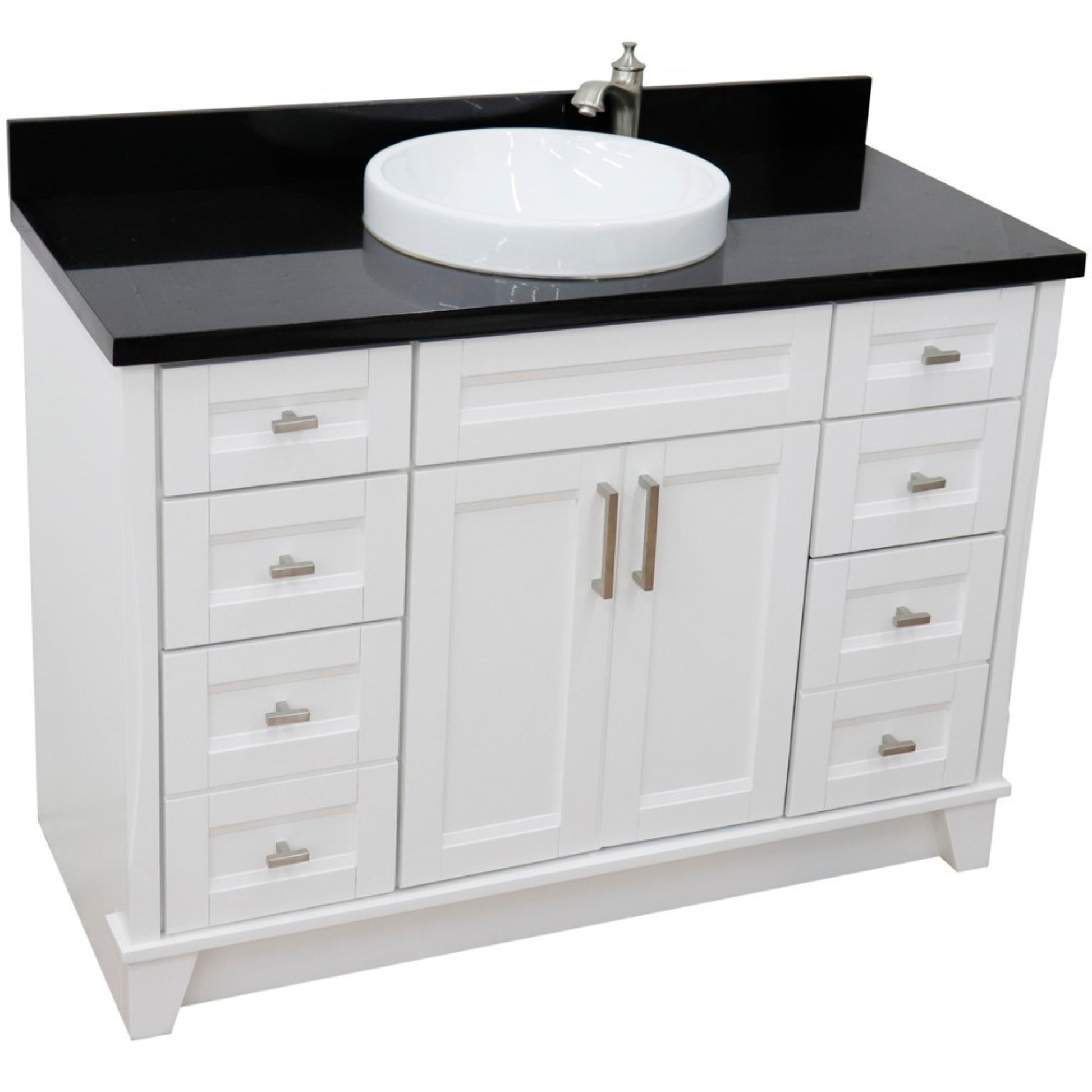 49" Single sink vanity in White finish with Black galaxy granite and round sink