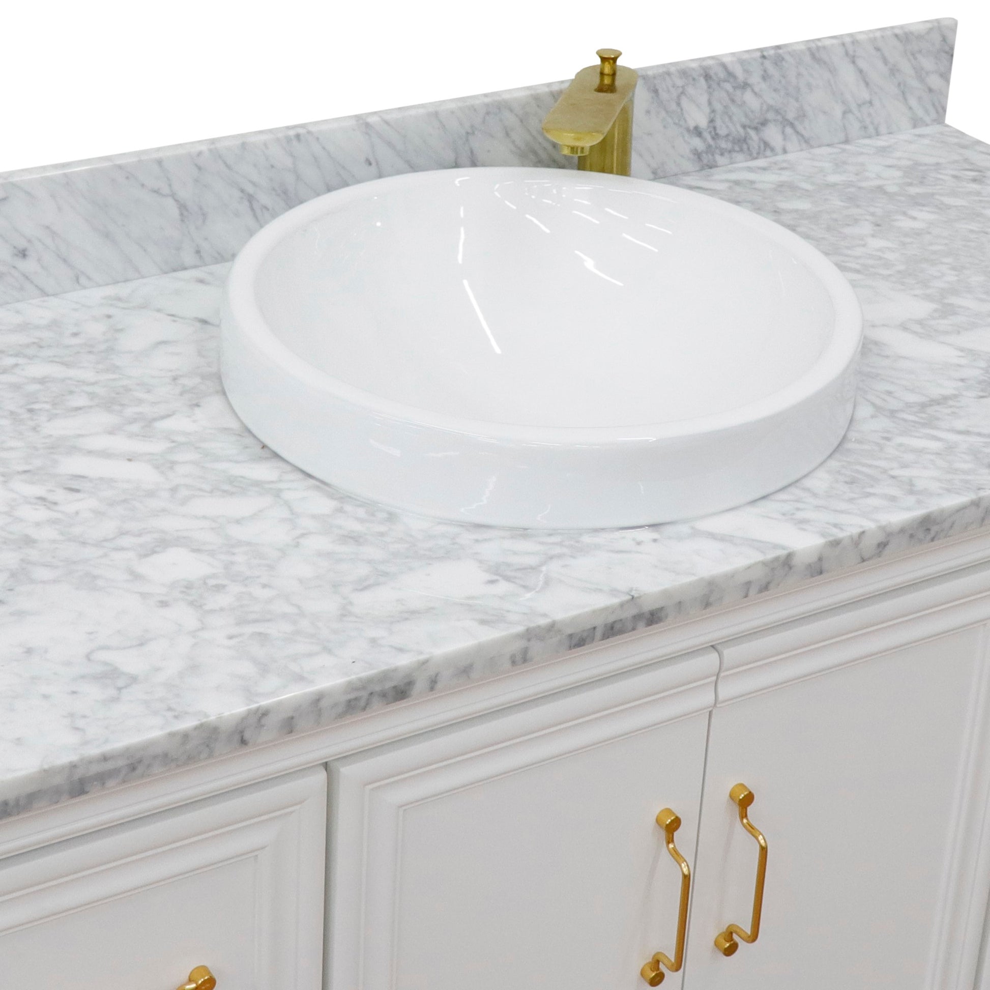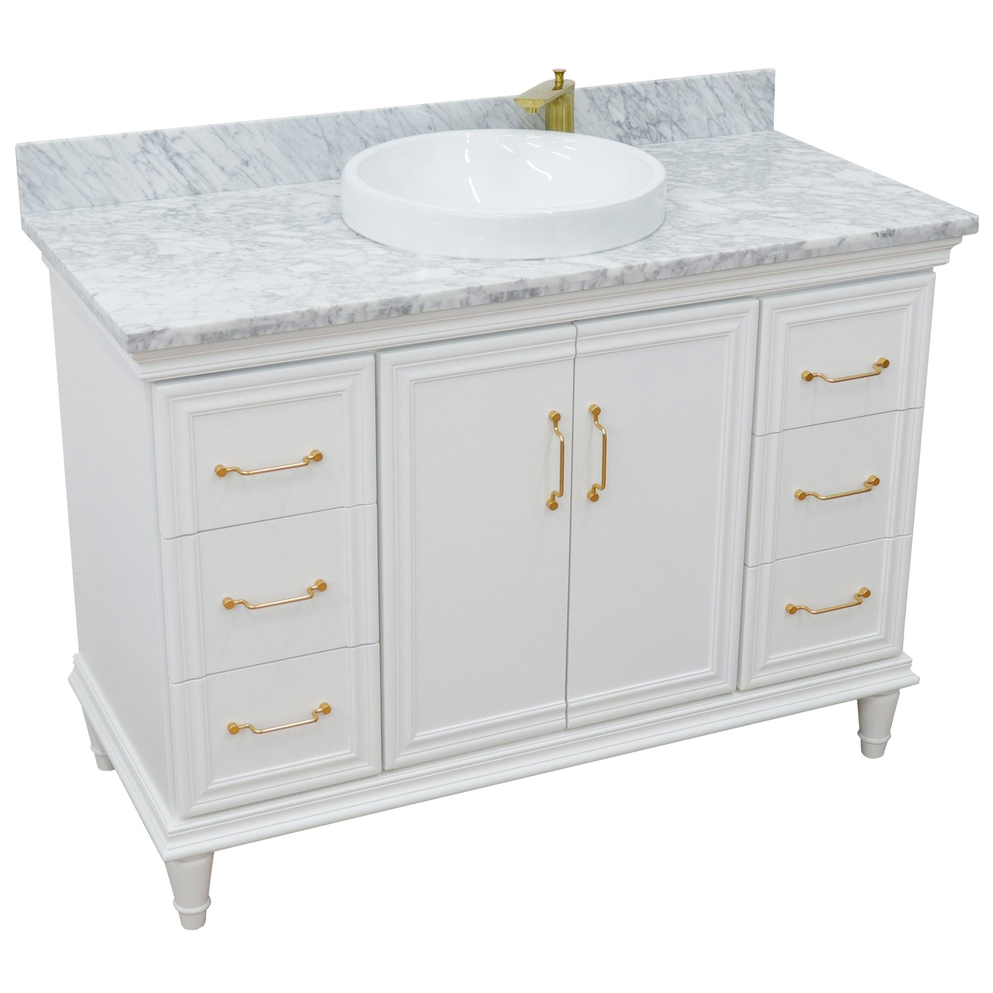 49" Single sink vanity in White finish with White carrara marble and round sink