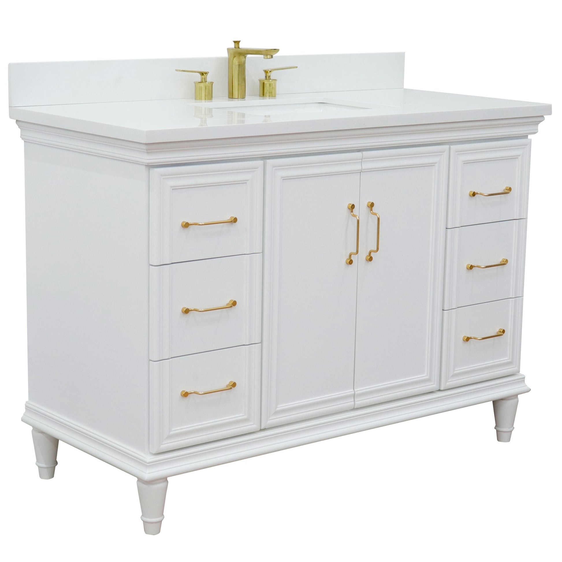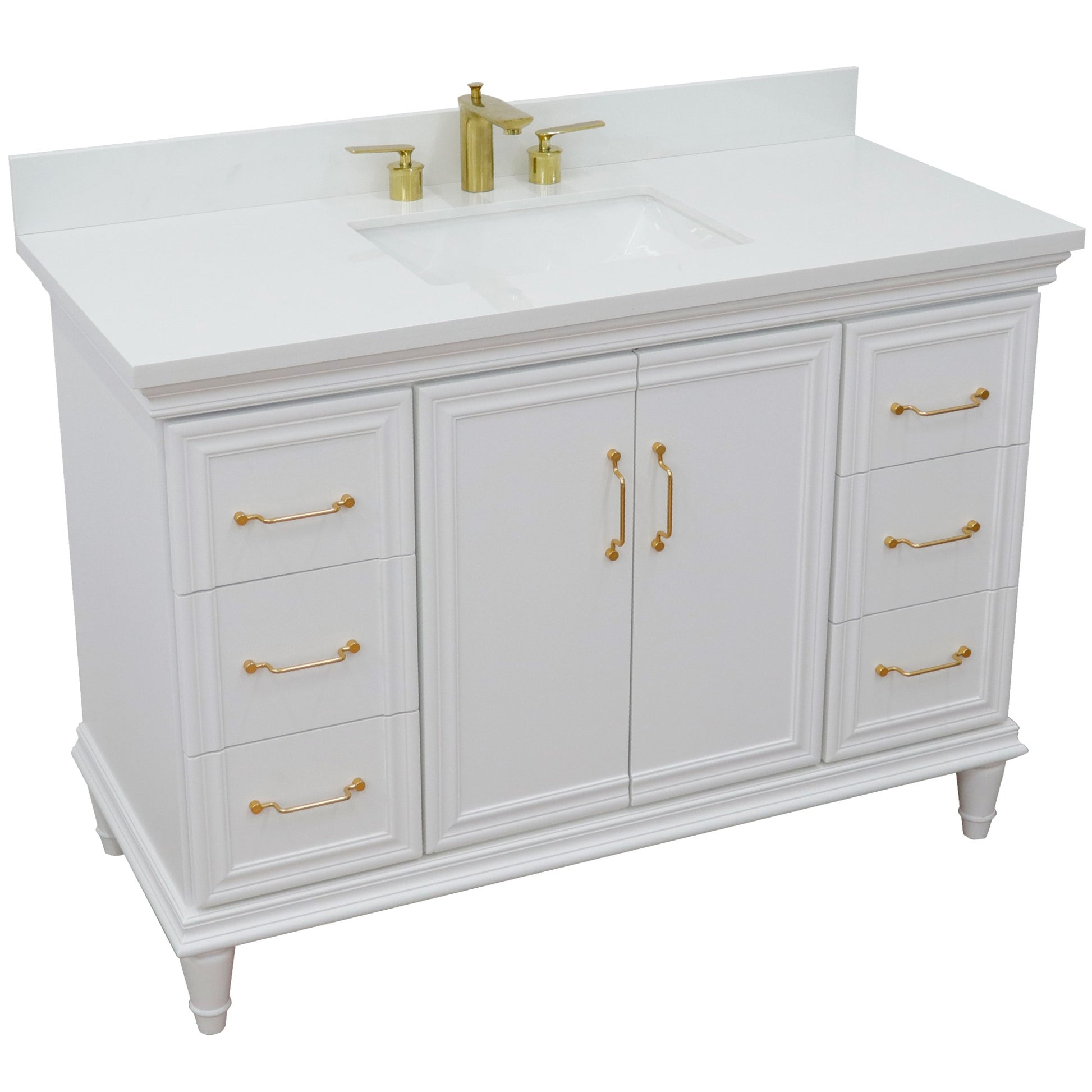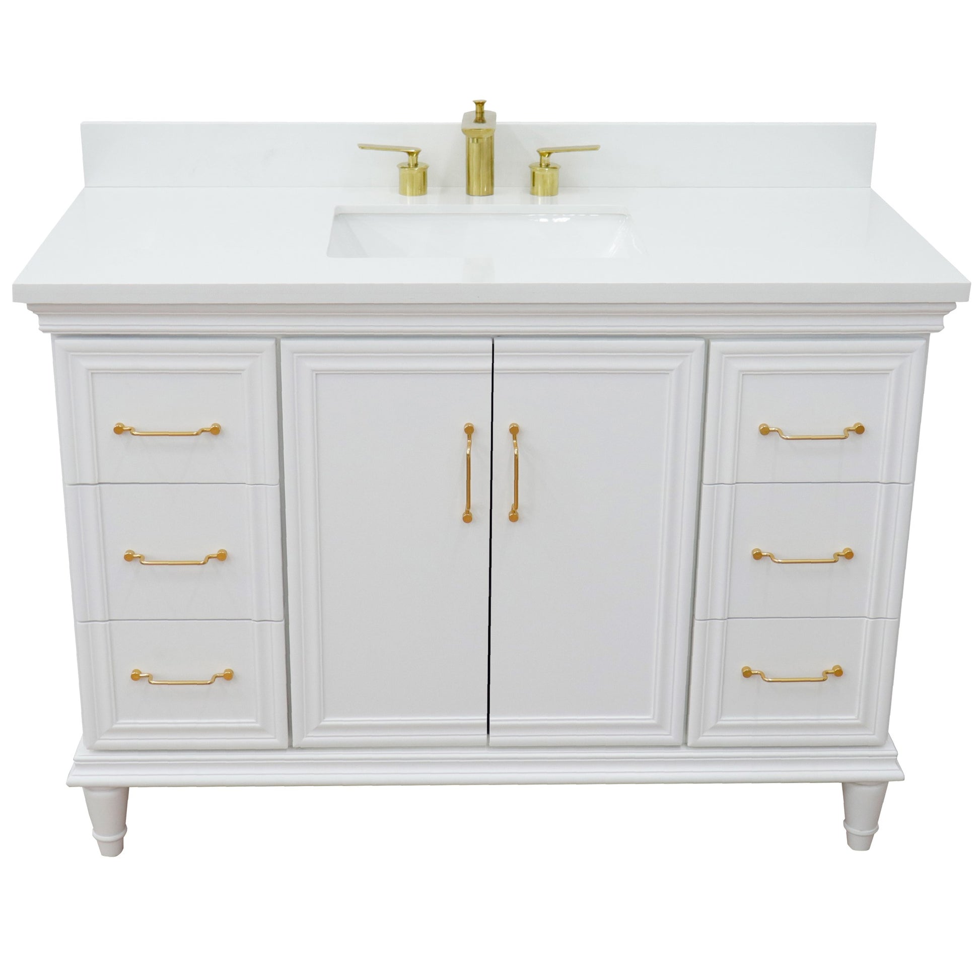 49" Single sink vanity in White finish with White engineered stone and rectangle sink