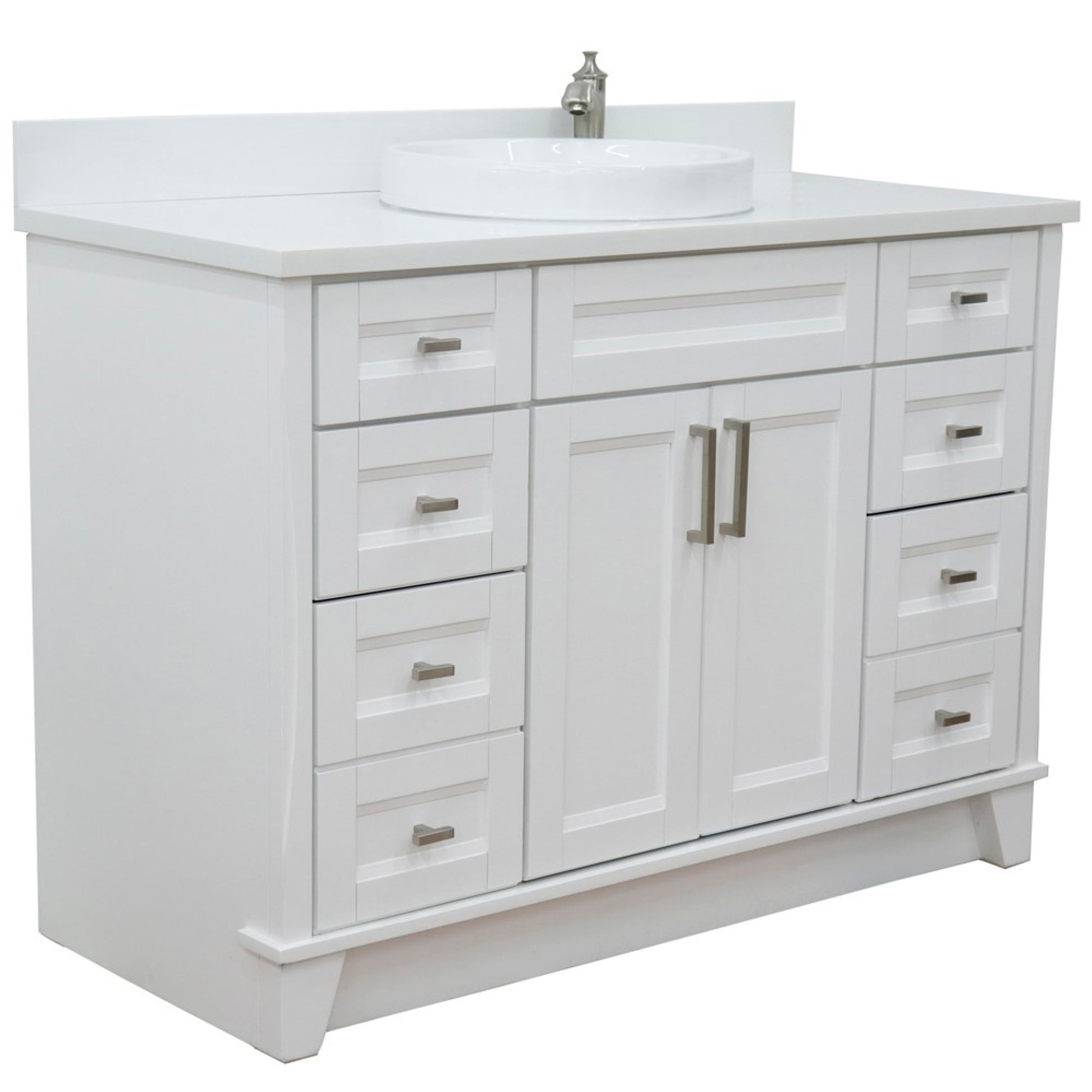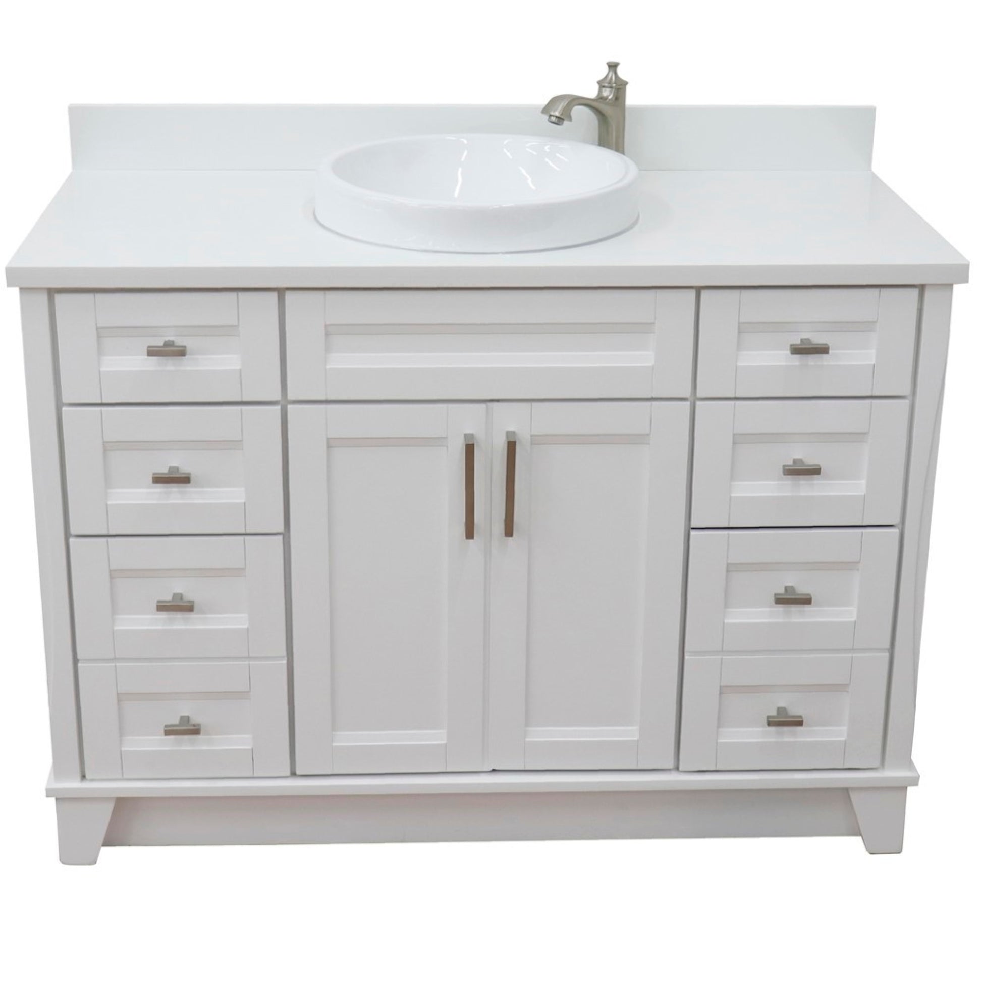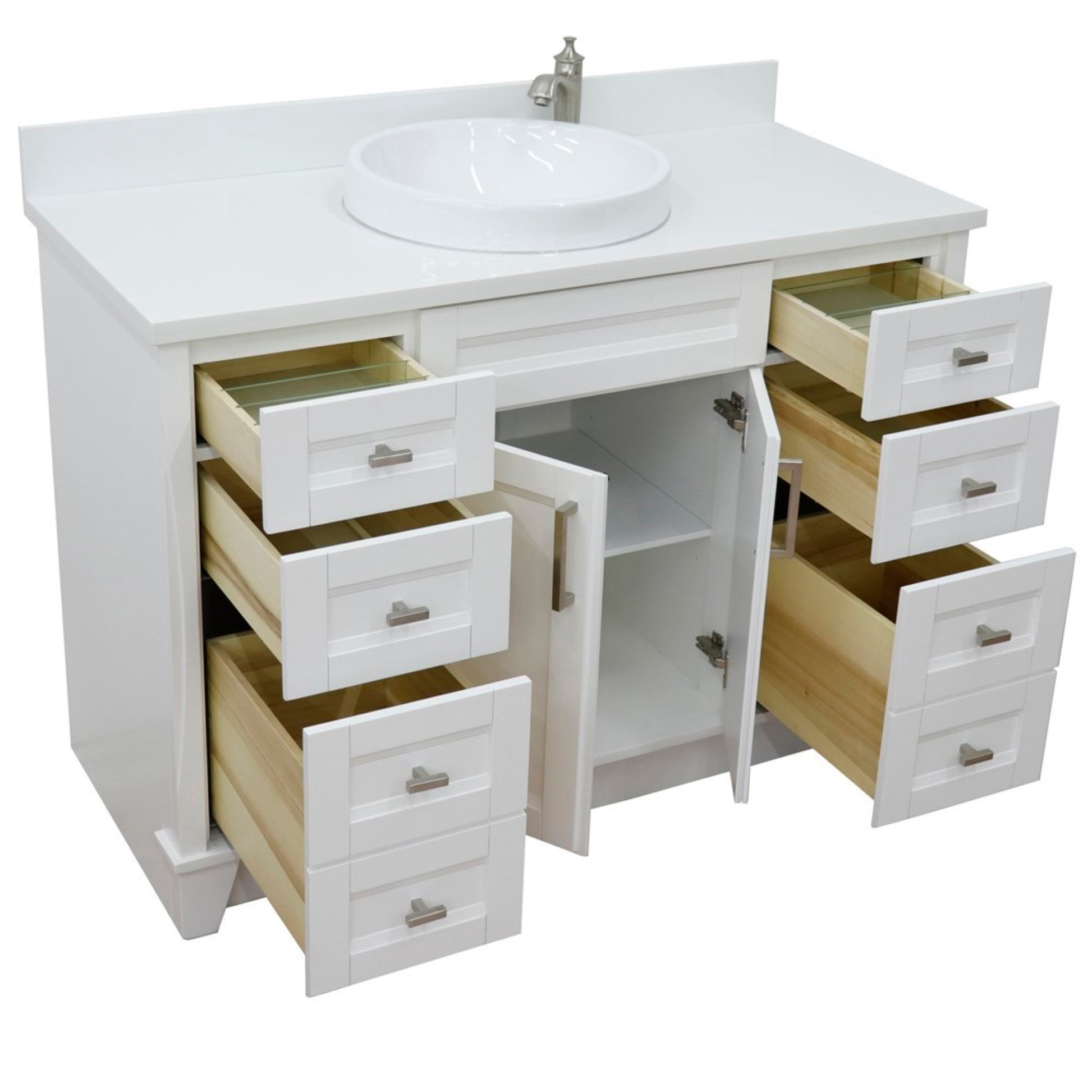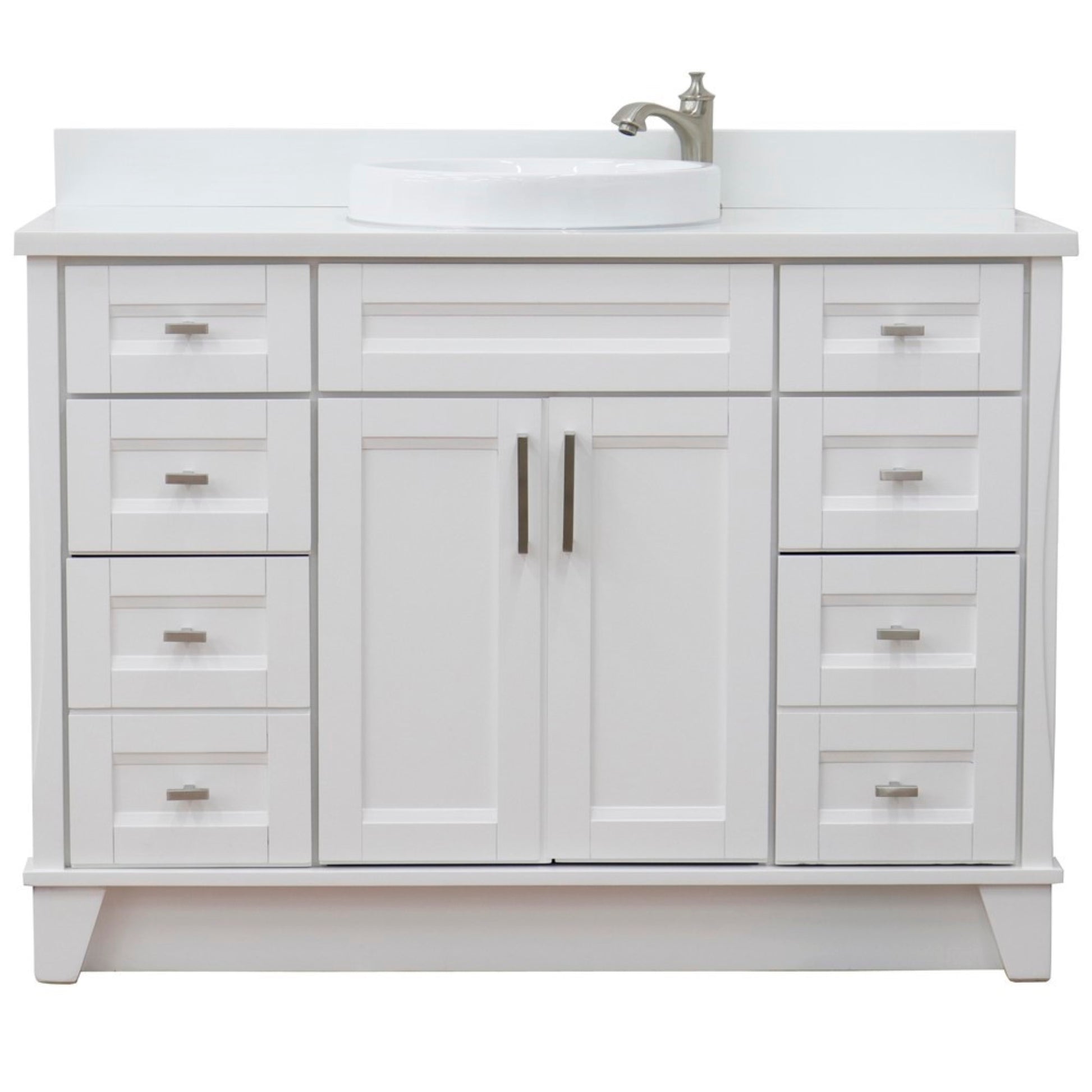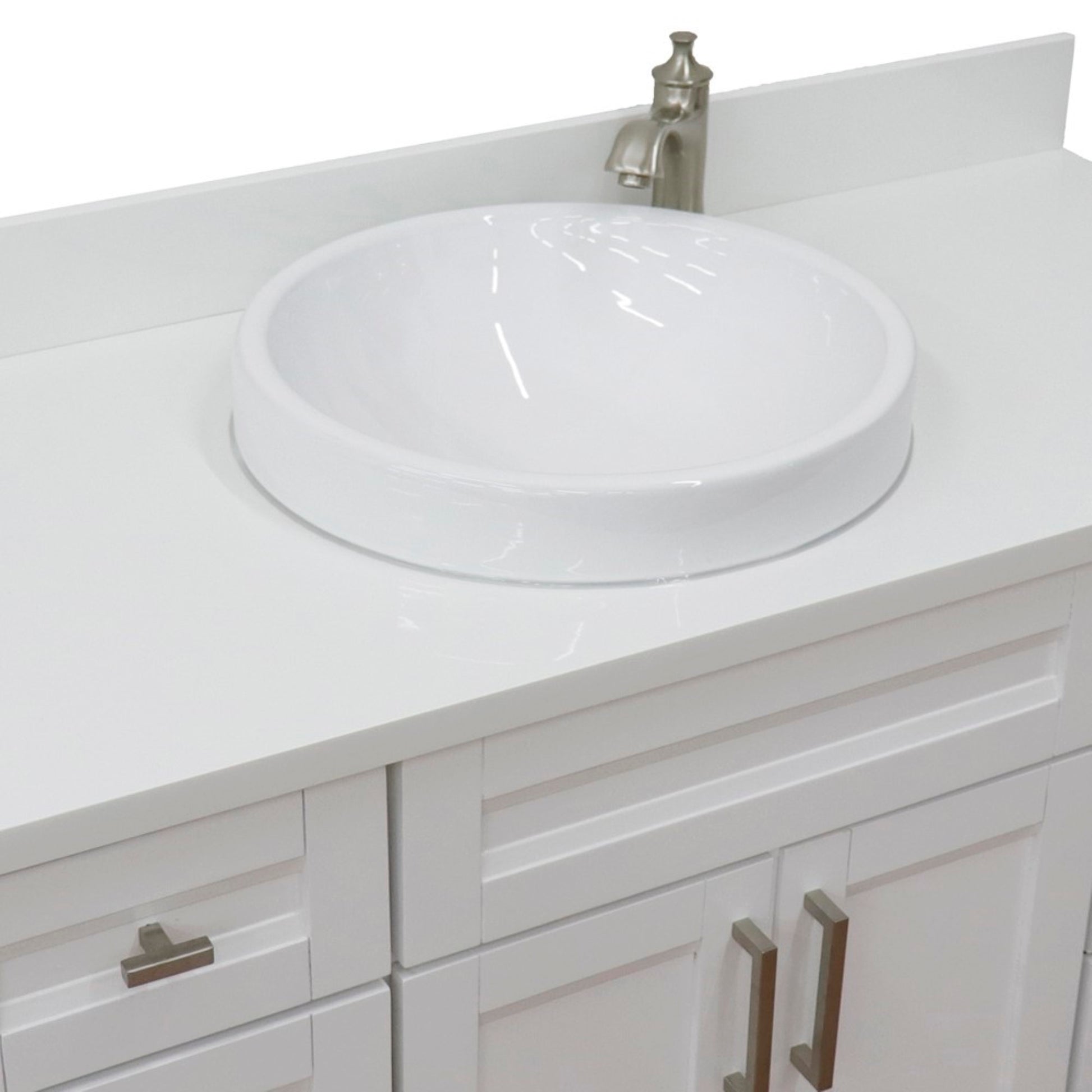 49" Single sink vanity in White finish with White engineered stone and round sink