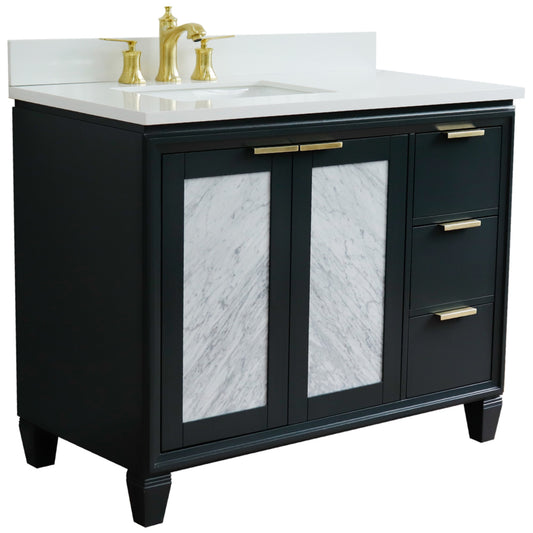 43" Single vanity in Dark Gray finish with White engineered stone and rectangle sink Left door/Left sink
