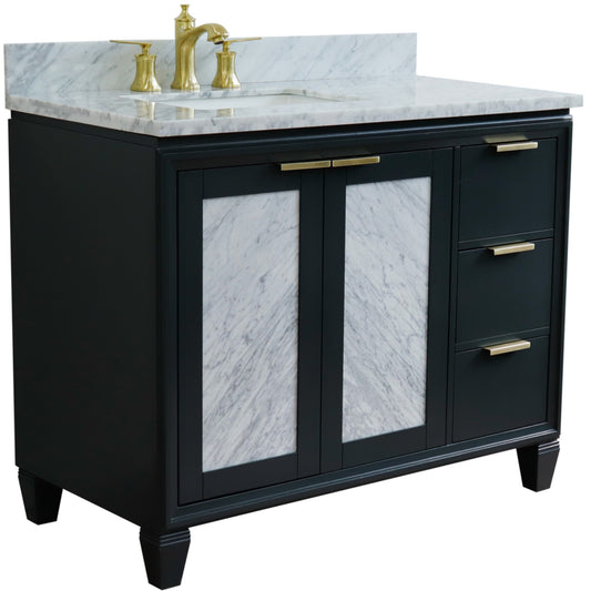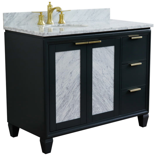 43" Single vanity in Dark Gray finish with White Carrara and oval sink Left door/Left sink