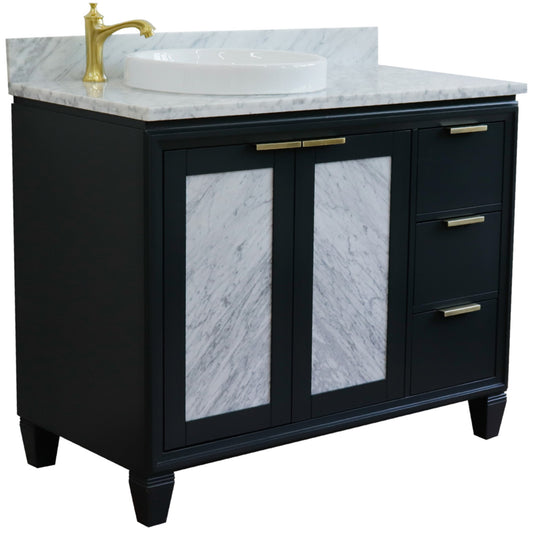 43" Single vanity in Dark Gray finish with White Carrara and round sink Left door/Left sink