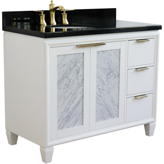 43" Single vanity in White finish with Black galaxy and oval sink Left door/Left sink