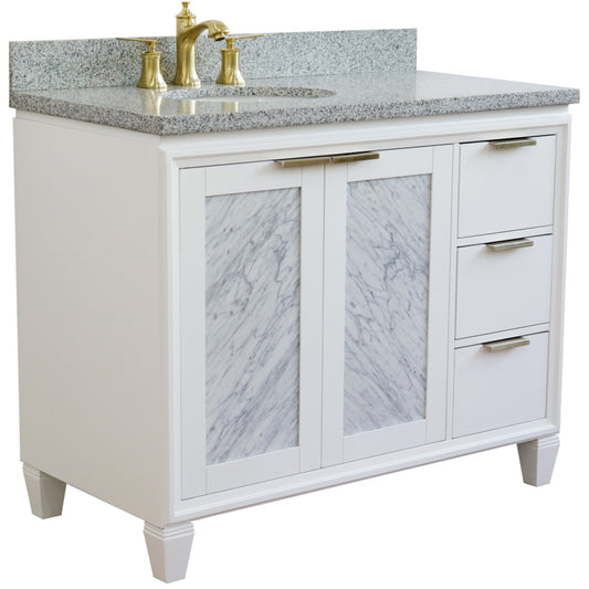43" Single vanity in White finish with Gray granite and oval sink Left door/Left sink