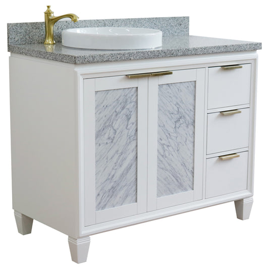 43" Single vanity in White finish with Gray granite and round sink Left door/Left sink