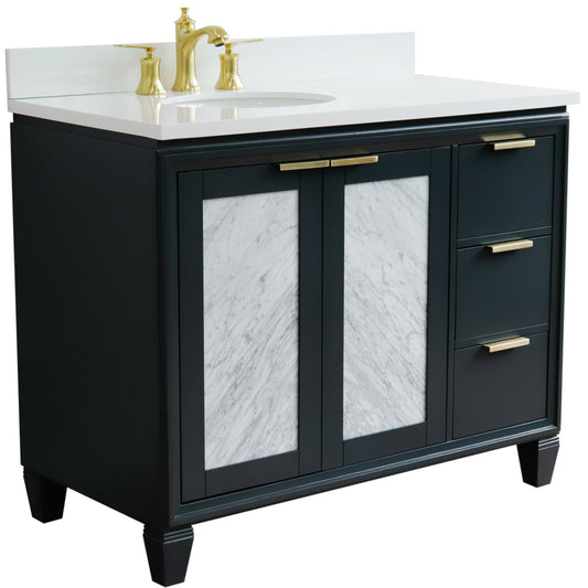 43" Single vanity in Dark Gray finish with White engineered stone and oval sink Left door/Left sink
