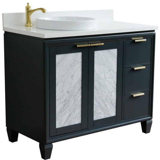 43" Single vanity in Dark Gray finish with White engineered stone and round sink Left door/Left sink