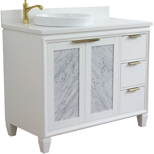 43" Single vanity in White finish with White engineered stone and round sink Left door/Left sink
