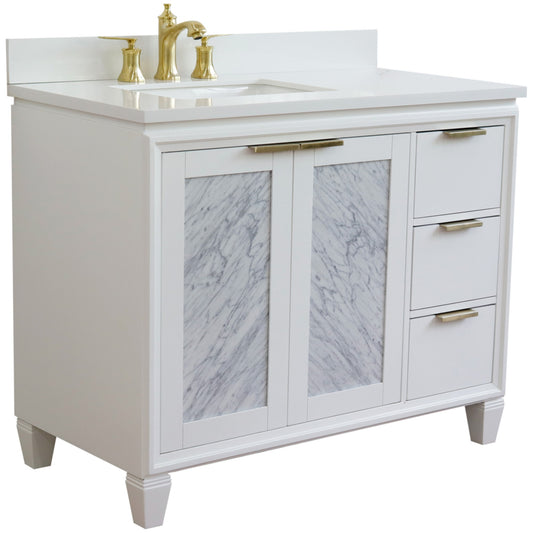 43" Single vanity in White finish with White engineered stone and rectangle sink Left door/Left sink