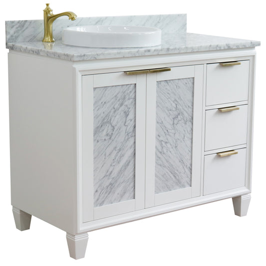 43" Single vanity in White finish with White Carrara and round sink Left door/Left sink