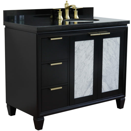 43" Single vanity in Black finish with Black galaxy and oval sink Right door/Right sink