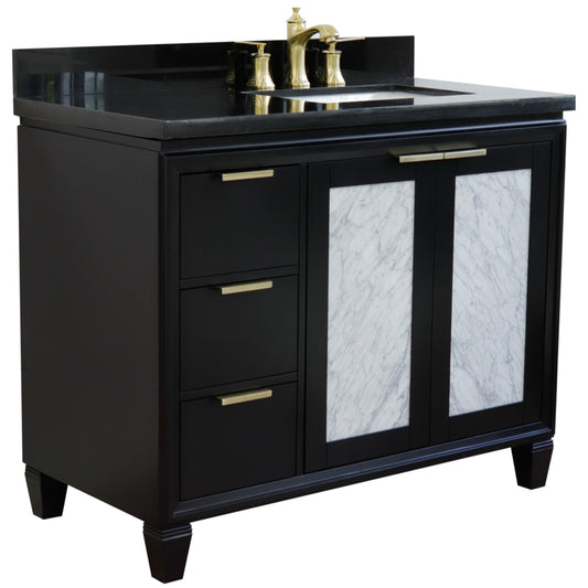 43" Single vanity in Black finish with Black galaxy and rectangle sink Right door/Right sink