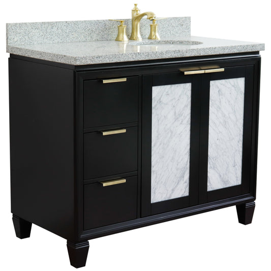 43" Single vanity in Black finish with Gray granite and oval sink Right door/Right sink