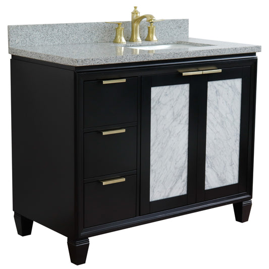 43" Single vanity in Black finish with Gray granite and rectangle sink Right door/Right sink
