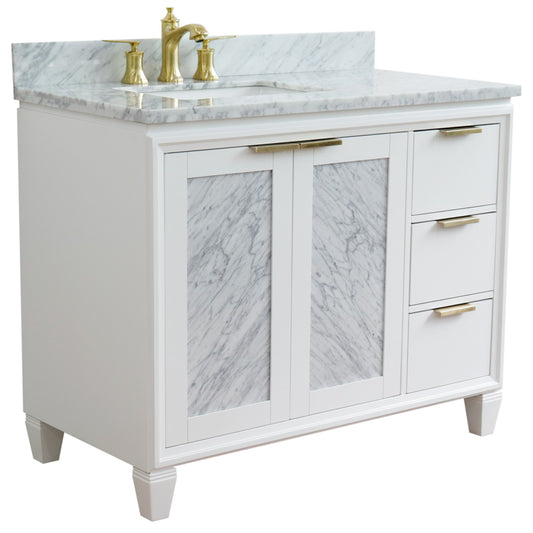 43" Single vanity in White finish with White Carrara and rectangle sink Left door/Left sink