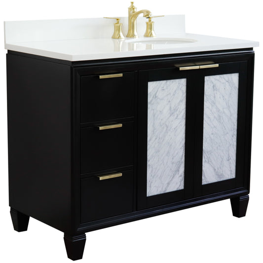 43" Single vanity in Black finish with White engineered stone and oval sink Right door/Right sink