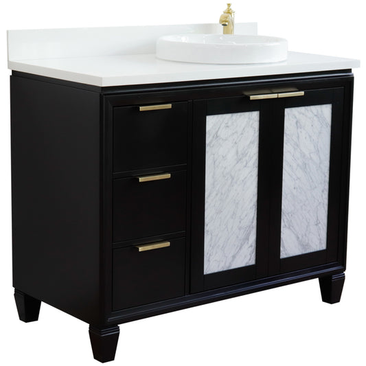 43" Single vanity in Black finish with White engineered stone and round sink Right door/Right sink