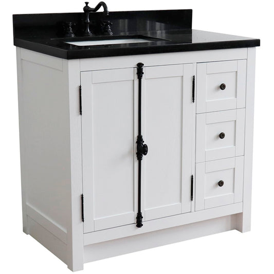 37" Single vanity in Glacier Ash finish with Black galaxy top and rectangle sink Left doors/Left sink