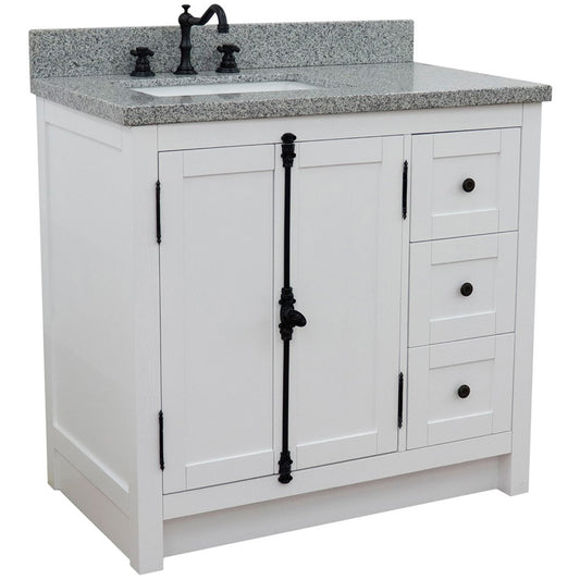 37" Single vanity in Glacier Ash finish with Gray granite top and rectangle sink Left doors/Left sink