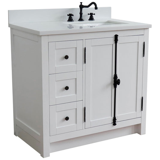 37" Single vanity in Glacier Ash finish with White engineered stone top and rectangle sink Right doors/Right sink