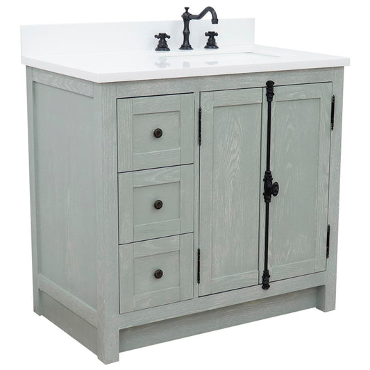 37" Single vanity in Gray Ash finish with White engineered stone top and rectangle sink Right doors/Right sink