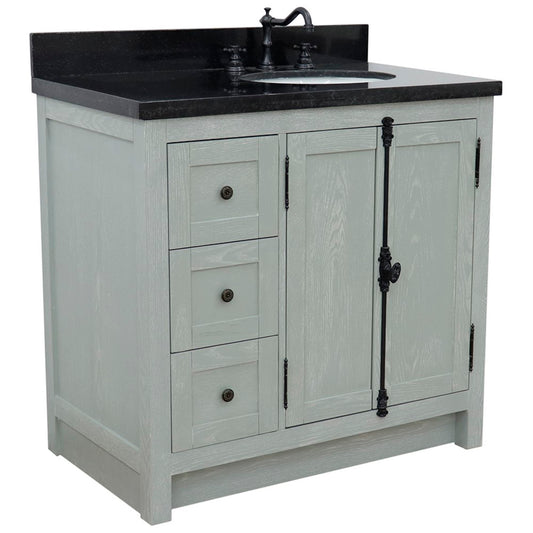 37" Single vanity in Gray Ash finish with Gray granite top and oval sink Right doors/Right sink