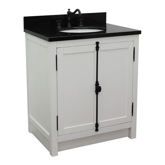 31" Single vanity in Glacier Ash finish with Black Galaxy top and oval sink