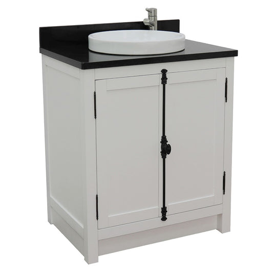 31" Single vanity in Glacier Ash finish with Black Galaxy top and round sink