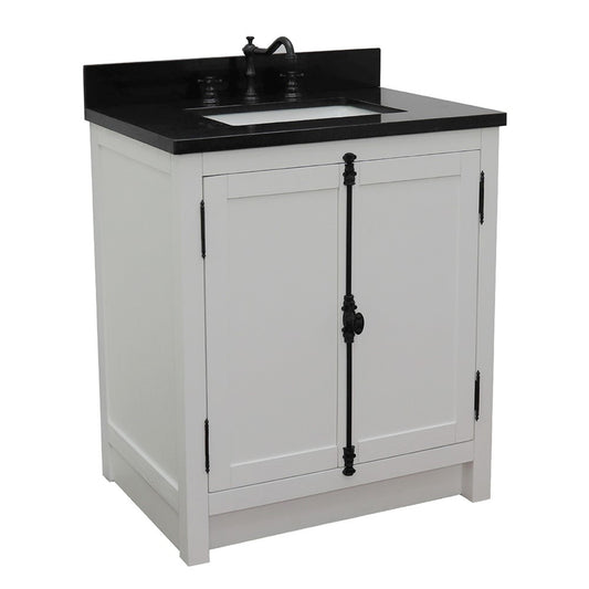 31" Single vanity in Glacier Ash finish with Black Galaxy top and rectangle sink
