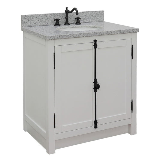 31" Single vanity in Glacier Ash finish with Gray granite top and oval sink