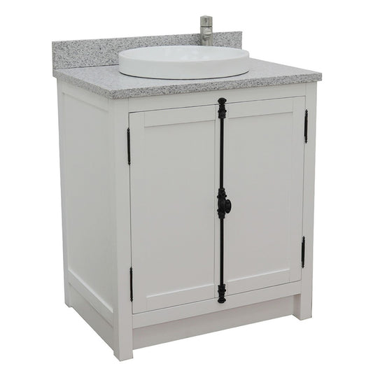31" Single vanity in Glacier Ash finish with Gray granite top and round sink
