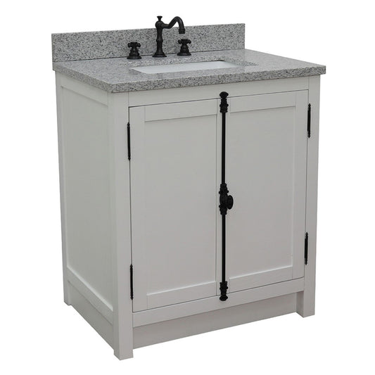 31" Single vanity in Glacier Ash finish with Gray granite top and rectangle sink