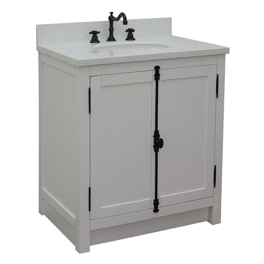 31" Single vanity in Glacier Ash finish with White engineered stone top and oval sink