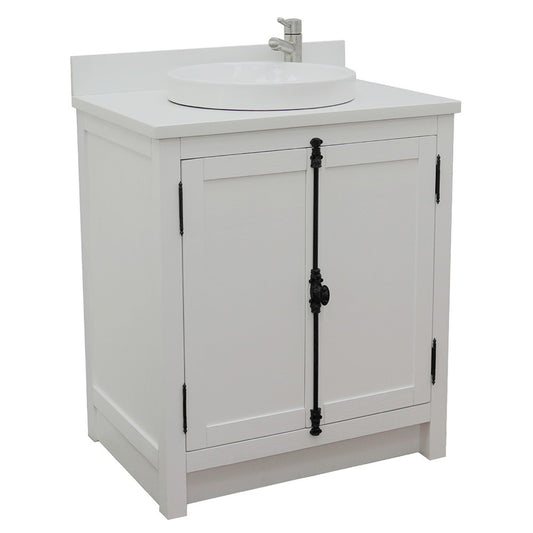 31" Single vanity in Glacier Ash finish with White engineered stone top and round sink