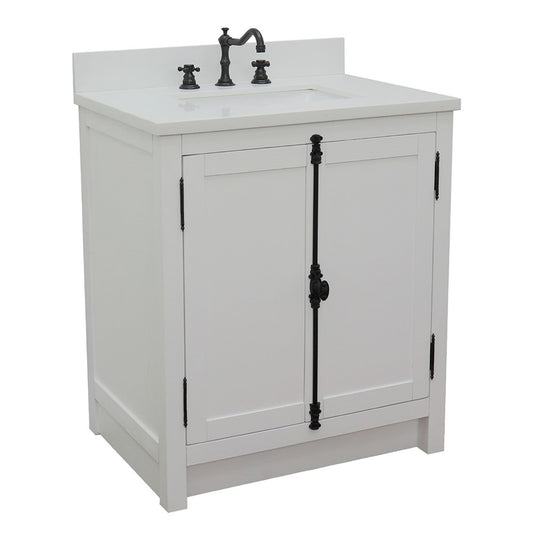 31" Single vanity in Glacier Ash finish with White engineered stone top and rectangle sink