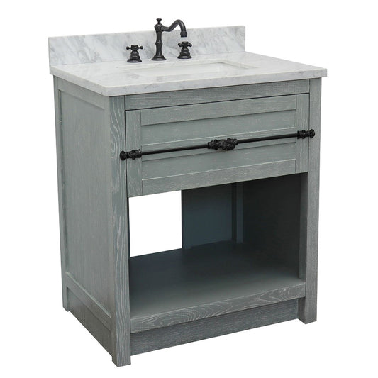31" Single vanity in Gray Ash finish with White Carrara top and rectangle sink