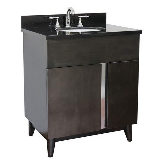 31" Single vanity in Silvery Brown finish with Black Galaxy top and oval sink