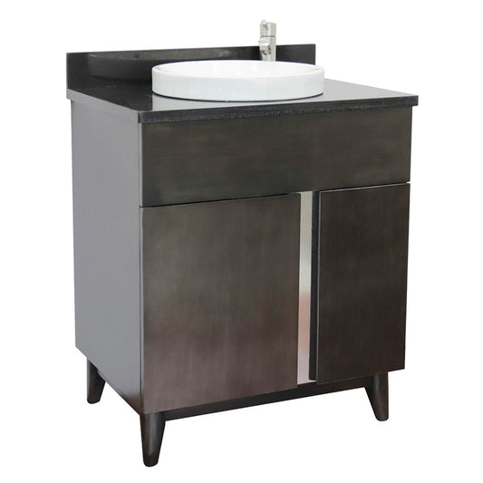 31" Single vanity in Silvery Brown finish with Black Galaxy top and round sink